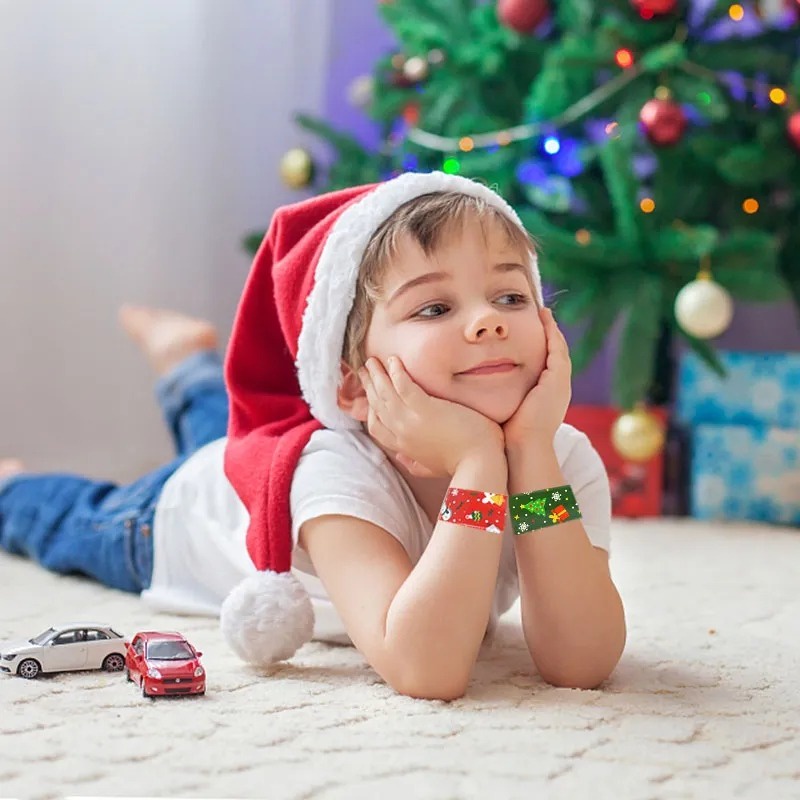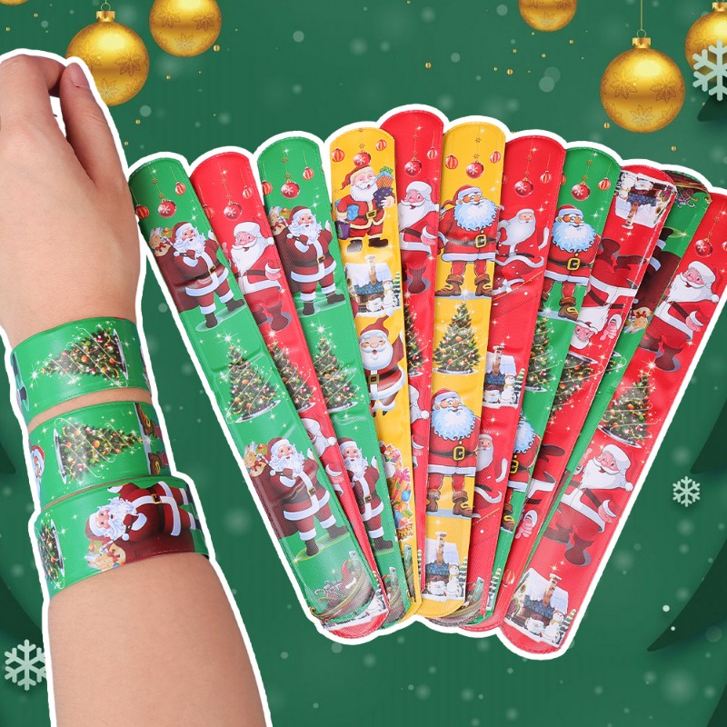 สร้อยข้อมือตบต้นคริสต์มาส พิมพ์ลายซานตาคลอส เกล็ดหิมะ กวางเอลก์ ของขวัญเด็ก สําหรับตกแต่งบ้าน
