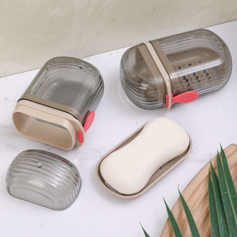 3ชิ้นทนทานพลาสติกกันน้ําสบู่กล่องปิดผนึก-ใสสีเทากล่องสบู่พร้อมถาดระบายน้ํา-เดินทางแบบพกพาสบู่ภาชนะเก็บ