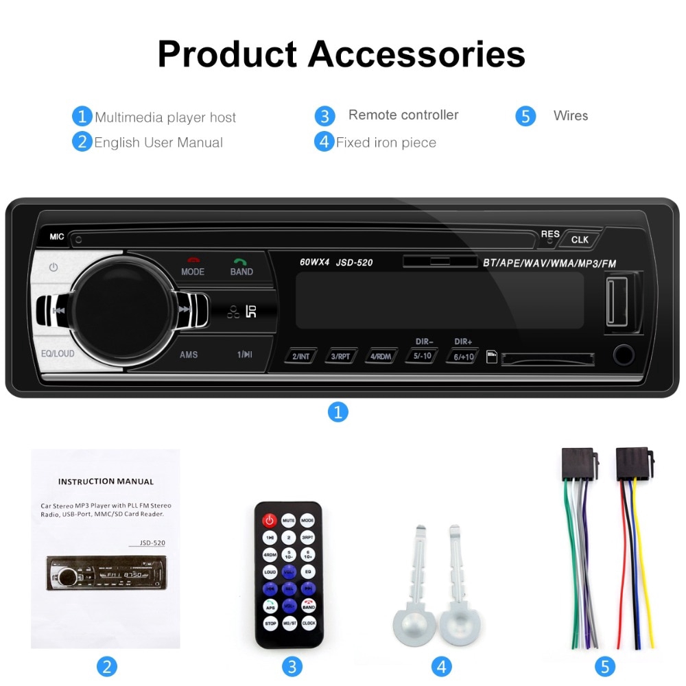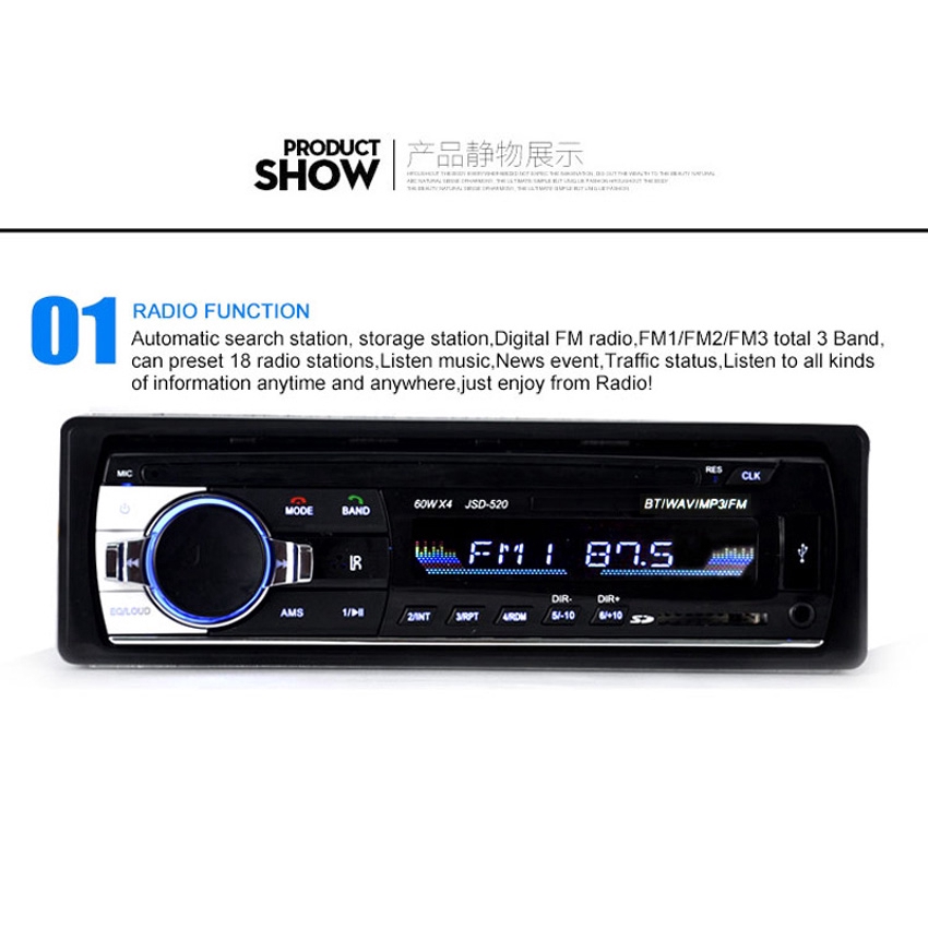 [โปรโมชั่นใหญ่] 24V JSD-520 เครื่องเล่นวิทยุสเตอริโอ บลูทูธ เครื่องเล่น MP3 / USB / SD / AUX-IN / FM ในรถยนต์ รถบรรทุก