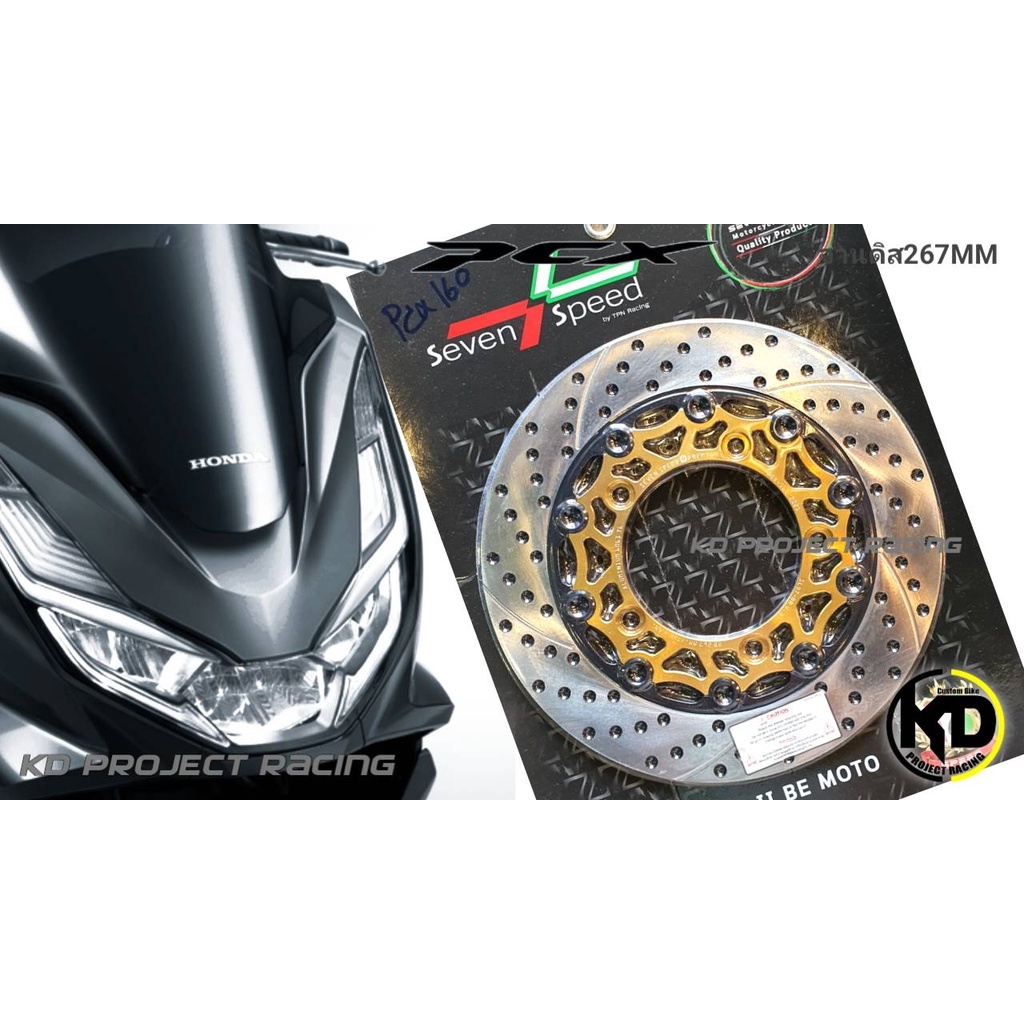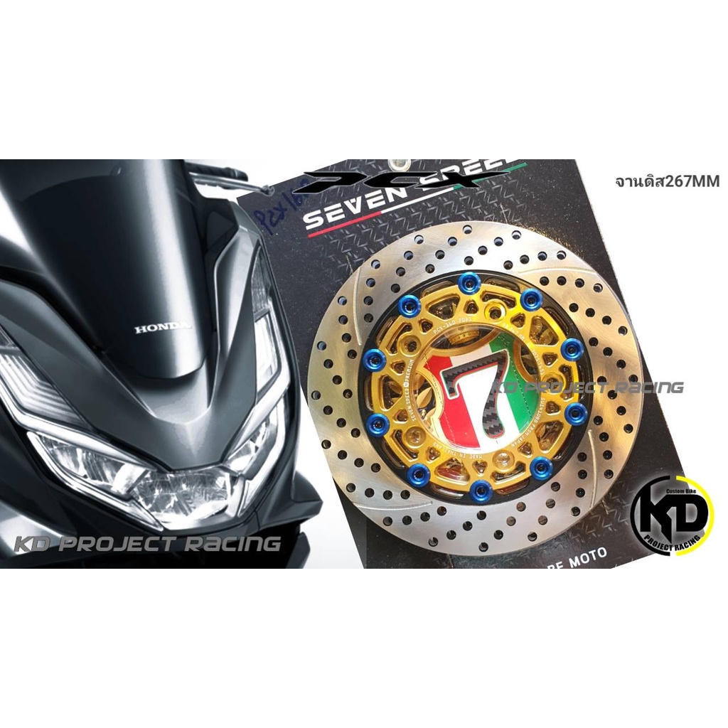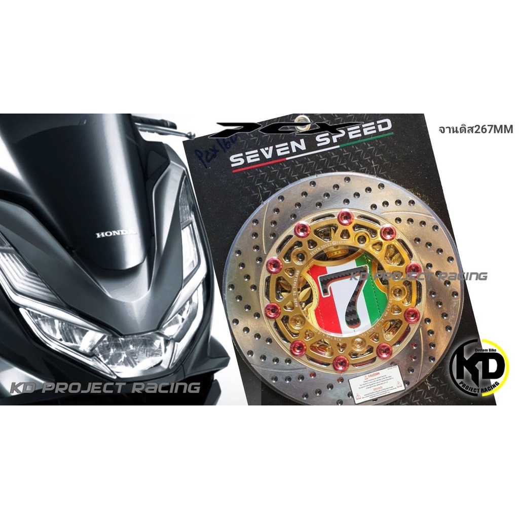 จานดิสหน้ากลม Seven speed 267mm พร้อมขาจับปั้มเดิม kamui มีหลายสี PCX 160 ABS