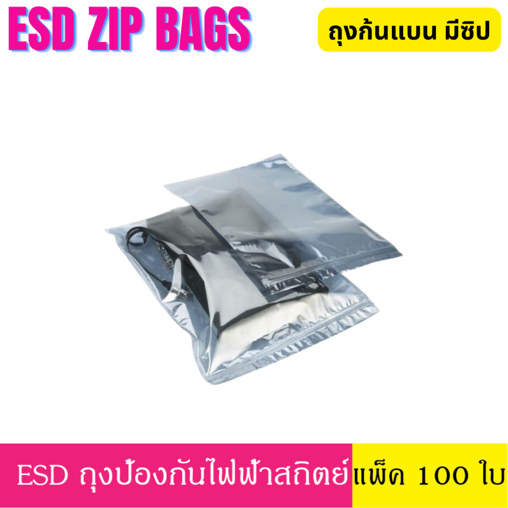 [100 ใบ] 9x13 / 10x16 ซม. ESD ZIP Bag ถุงป้องกันไฟฟ้าสถิตย์ Anti Static Bag ก้นแบน ถุงแบน ถุงฟอยด์ ก้นแบน