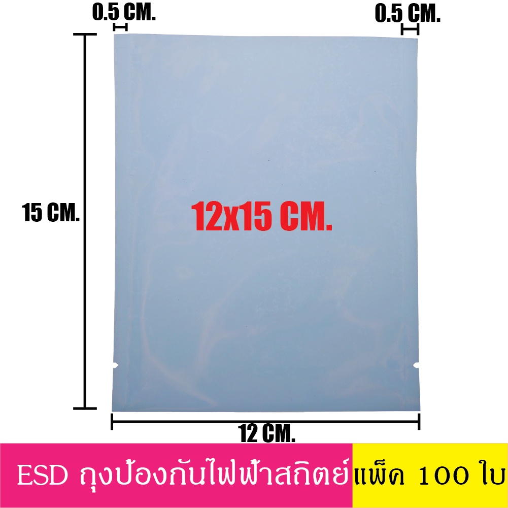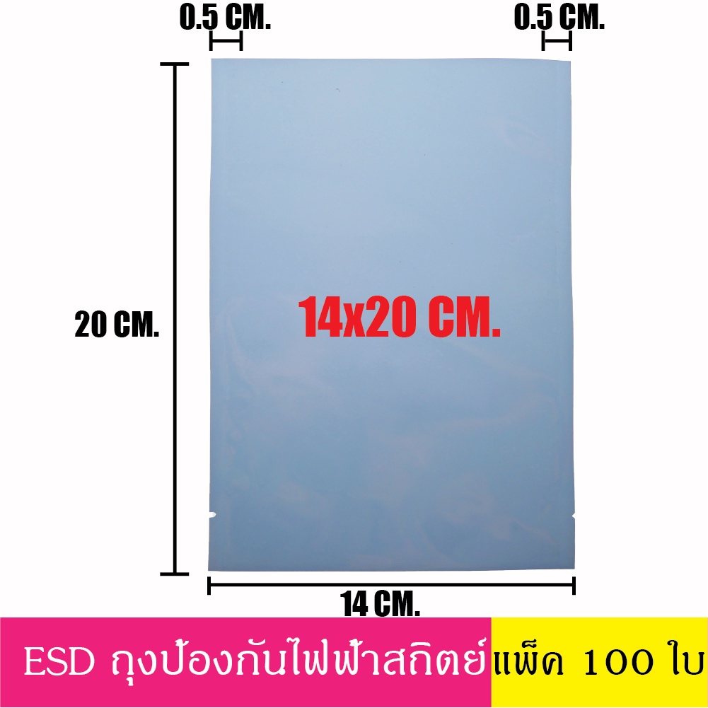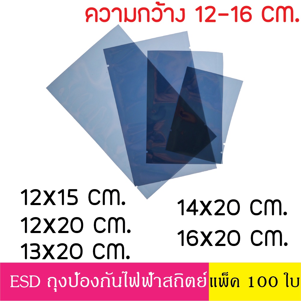 [แพ็ค 100 ใบ] ESD Bag ถุงป้องกันไฟฟ้าสถิตย์ Anti Static Bag ก้นแบน ถุงแบน ป้องกันไฟฟ้าสถิตย์ กว้าง 12-16 ซม.