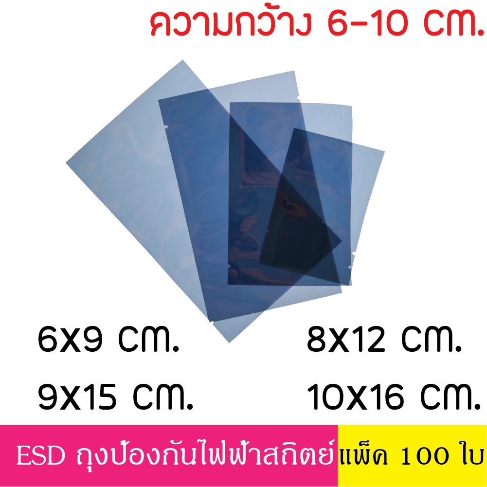 [แพ็ค 100 ใบ] ESD Bag ถุงป้องกันไฟฟ้าสถิตย์ Anti Static Bag ก้นแบน ถุงแบน ป้องกันไฟฟ้าสถิตย์ ถุงฟอยด์ ก้นแบน กว้าง 6-10ซ
