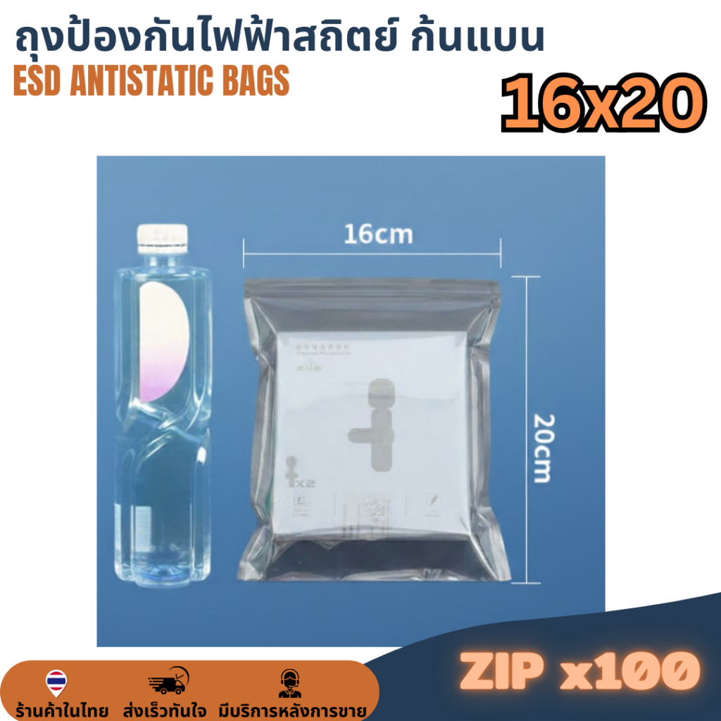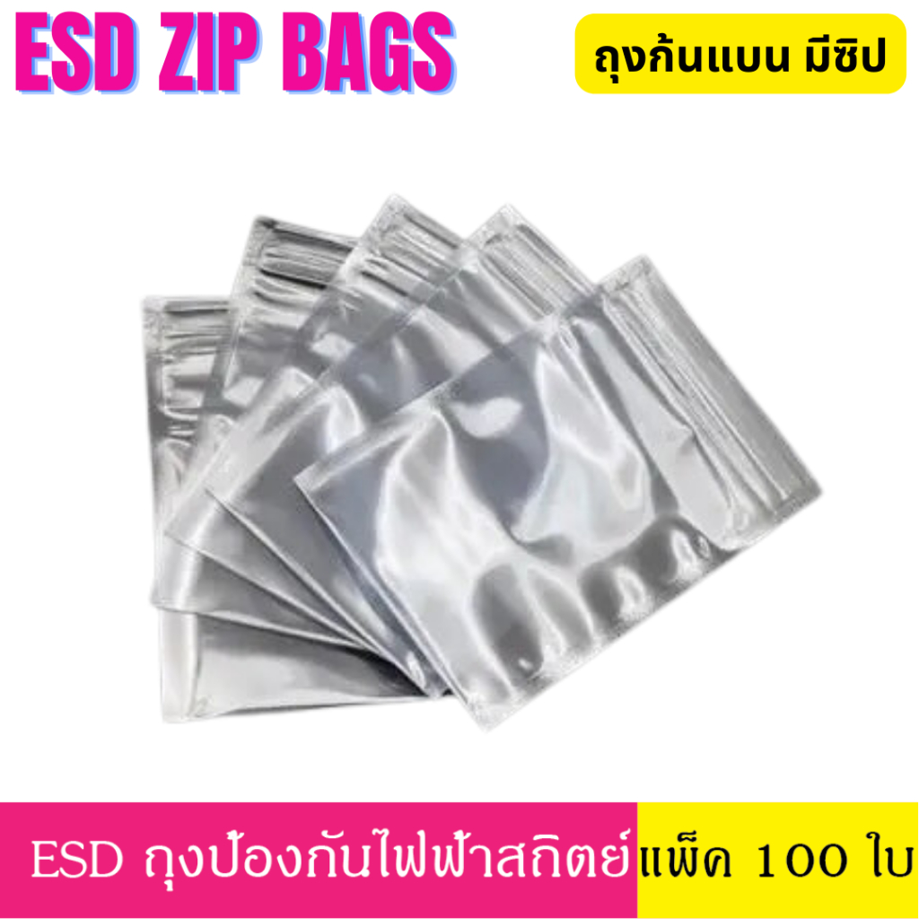 [100 ใบ] 12x18 16x20 cm ซม. ESD ZIP Bag ถุงป้องกันไฟฟ้าสถิตย์ Anti Static Bag ก้นแบน ถุงแบน ถุงฟอยด์ ก้นแบน