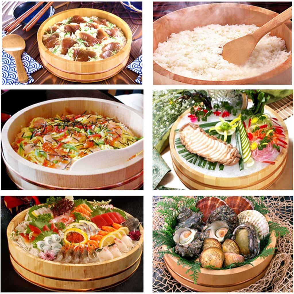 ชามผสมข้าวซูชิ วัสดุไม้แบบฮันกิริ 4ขนาด ชามซูชิ แบบญี่ปุ่นดั้งเดิมพร้อมแถบทองแดง สำหรับร้านอาหาร