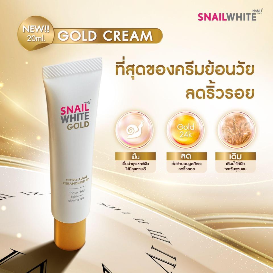 SNAILWHITE นามุ ไลฟ์ สเนลไวท์ โกลด์ ครีม Gold Cream (ครีมลดเลือนริ้วรอย) 20มล. (10SW00258)