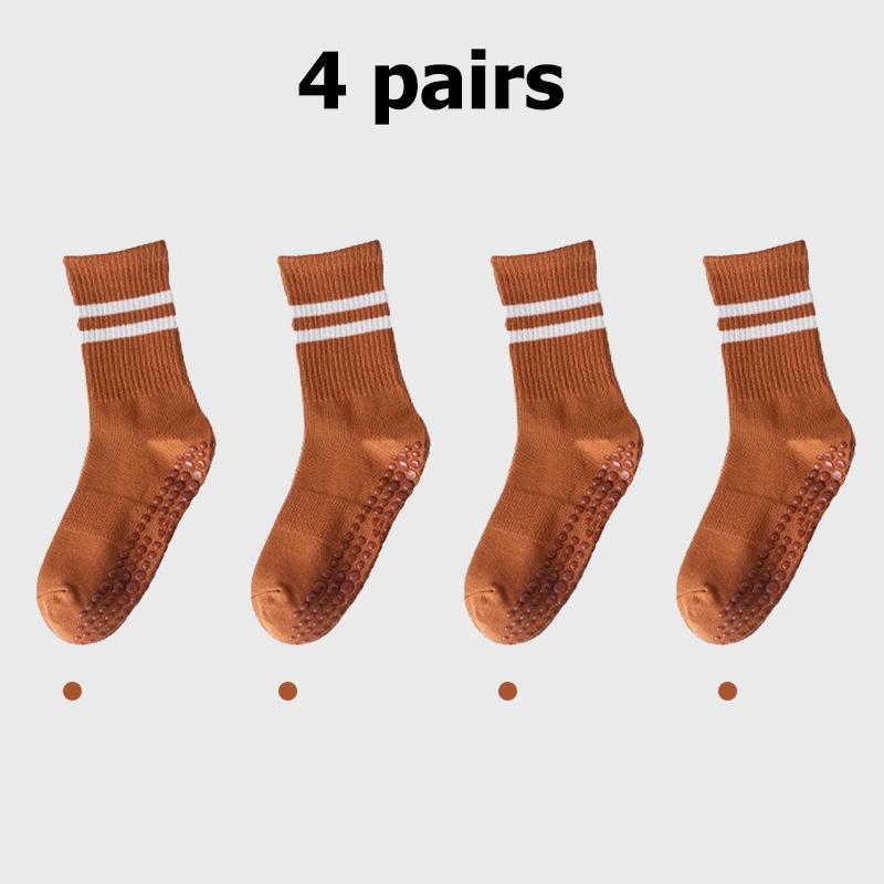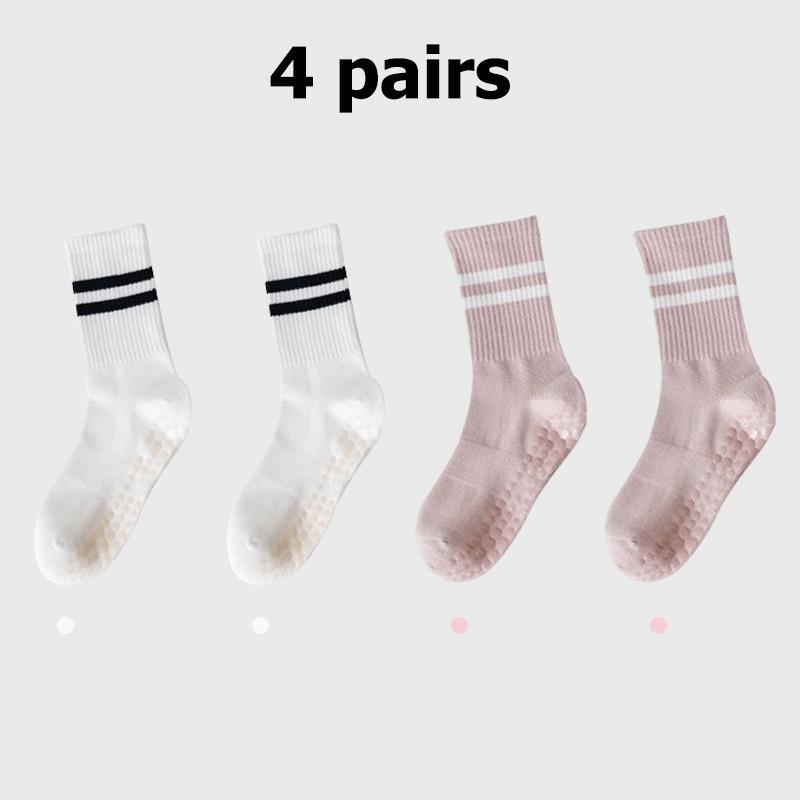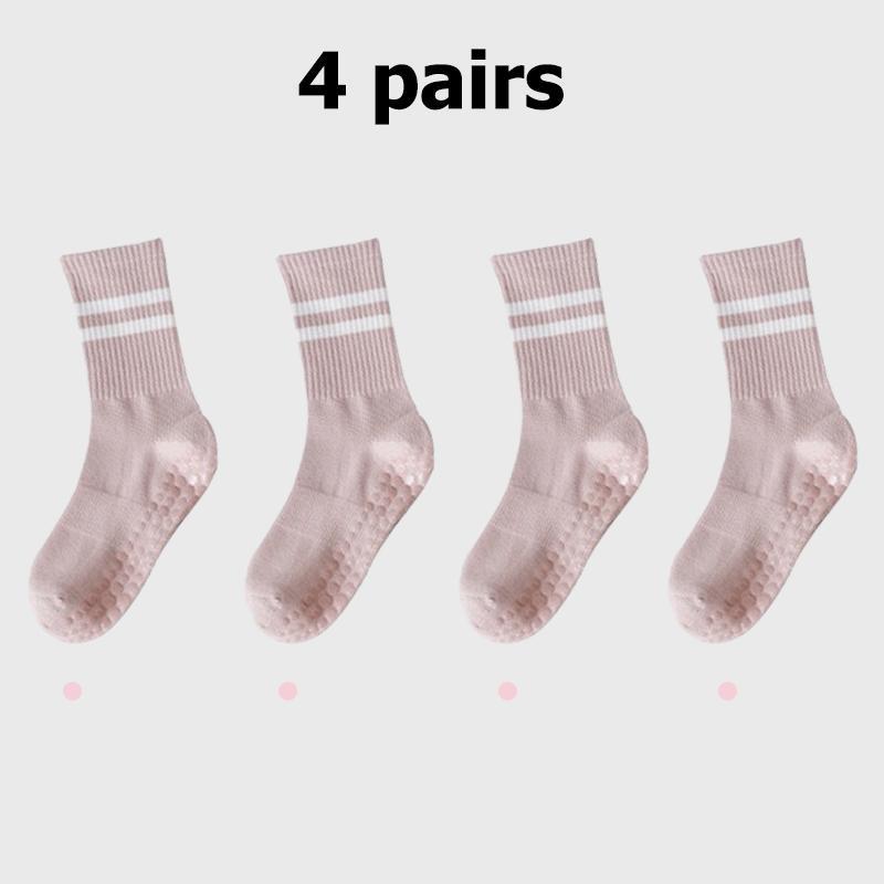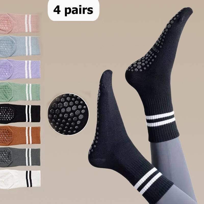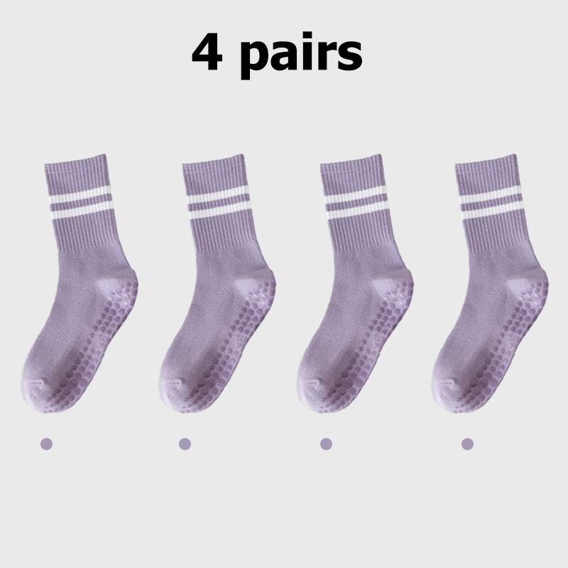 [แพ็ค 4คู่]ถุงเท้ากีฬากันลื่นสำหรับโยคะ พิลาทิส ถุงเท้ากริป เต้นรำ ฟิตเนส เทรนนิ่ง กันลื่นแบบ Yoga socks