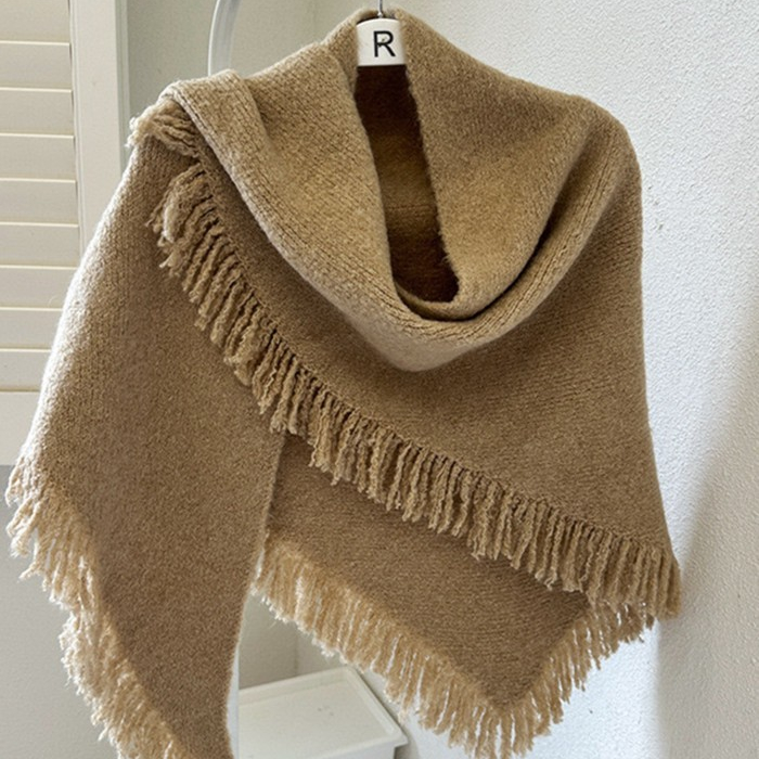 ผ้าคลุมไหล่ขนสัตว์พู่สำหรับผู้หญิง สไตล์ใหม่ สวมได้ตลอดทั้งปี