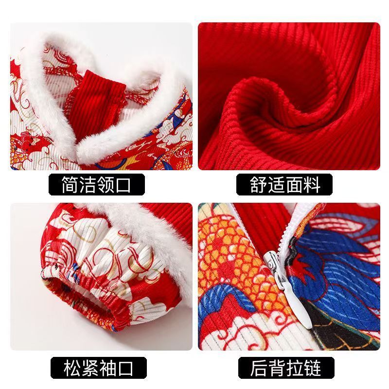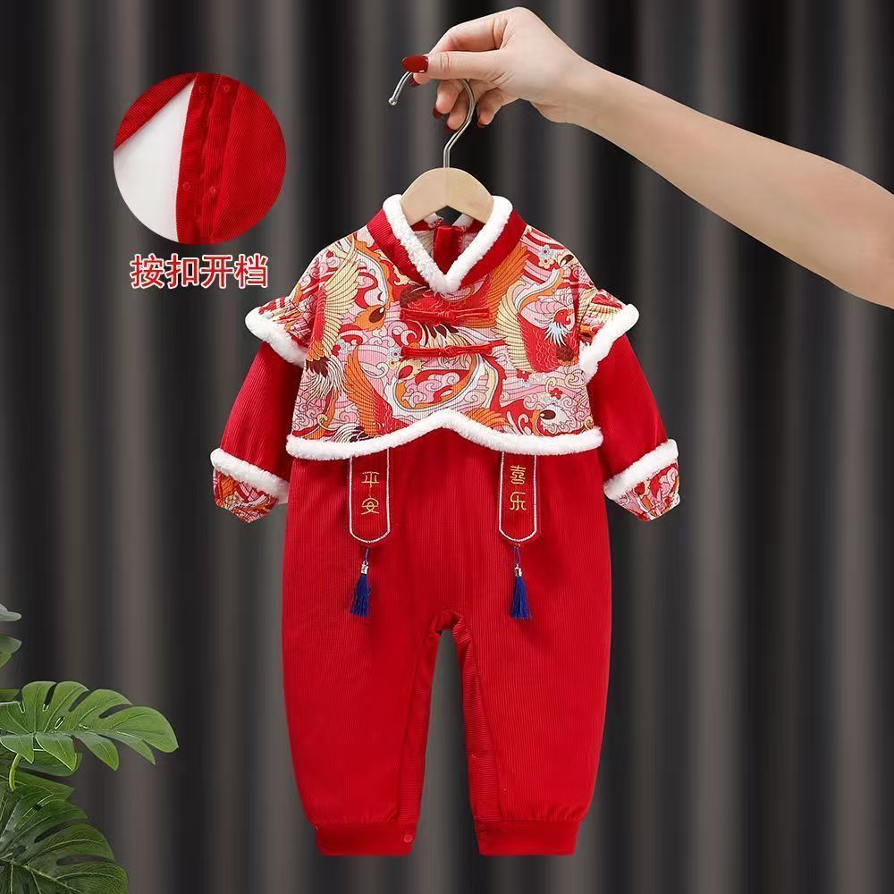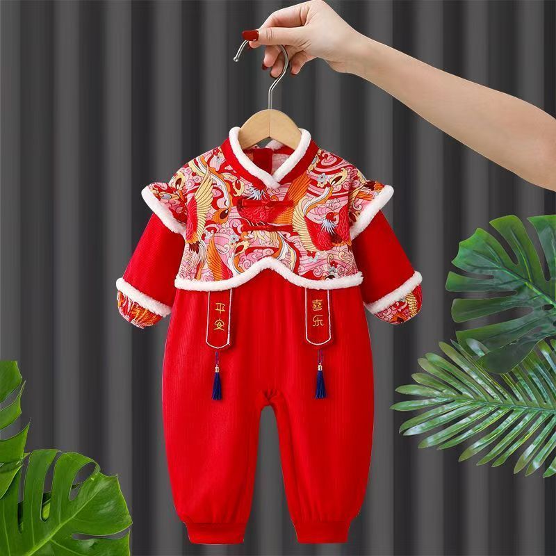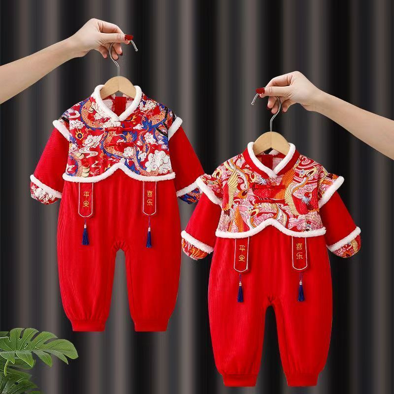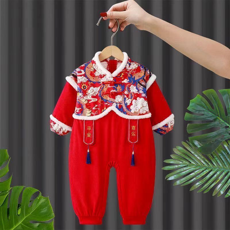 ชุดเอี๊ยมเด็กชิ้นเดียวเสื้อผ้าปีใหม่ผ้ากันเปื้อนป้องกันการสกปรกกิน กลิ่นฉุน ชุดเด็กเอี๊ยมเด็กสวมใส่ด้านนอกชุดคลาน 51024