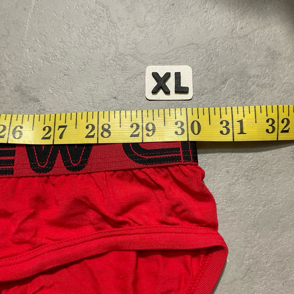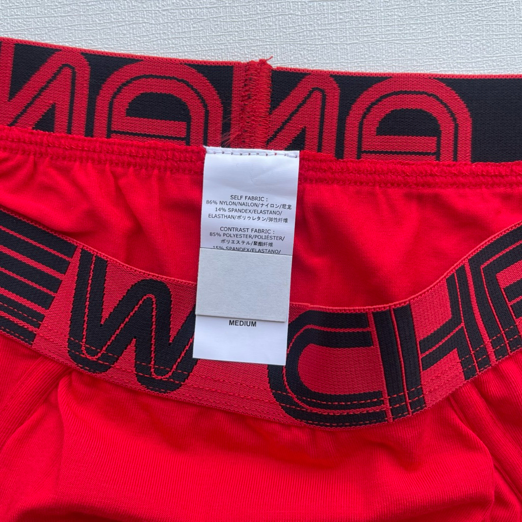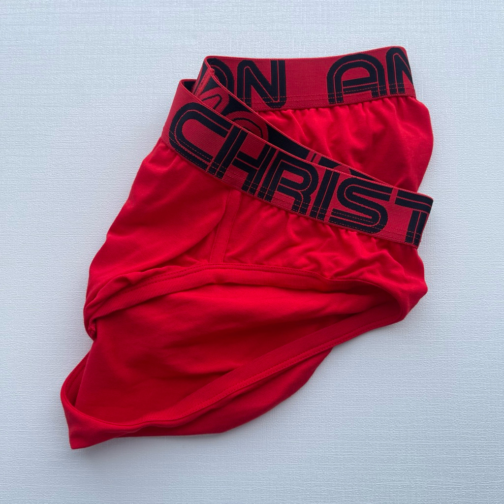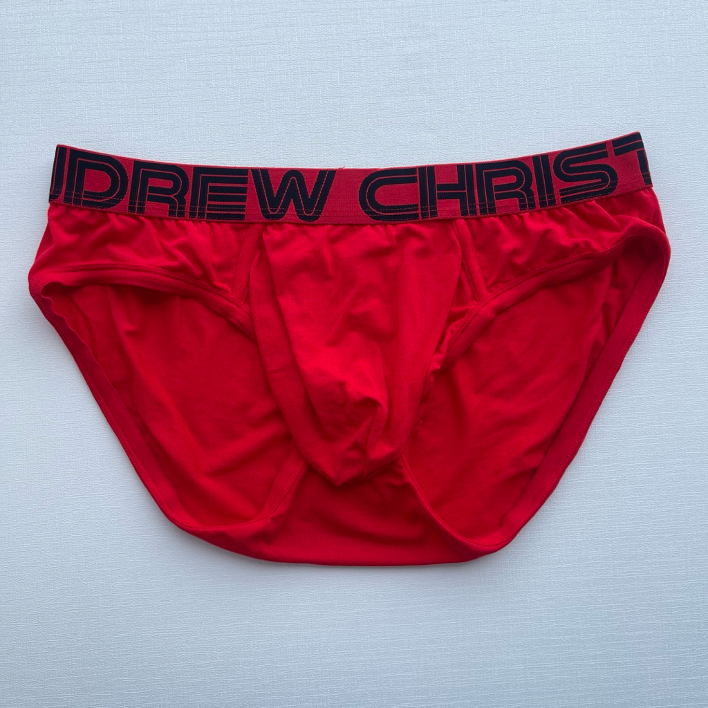 กางเกงในชาย Andrew Christian brief สีแดง ปักดำ ผ้าไนลอน size M,XL