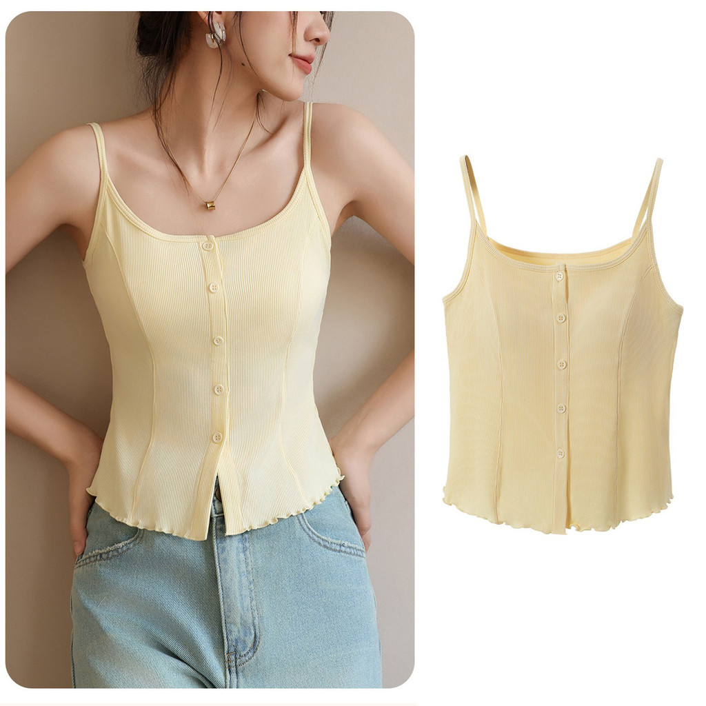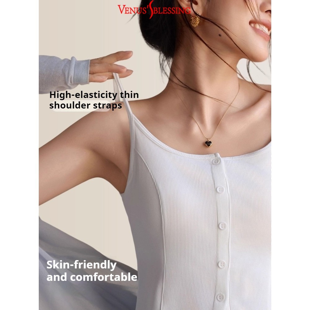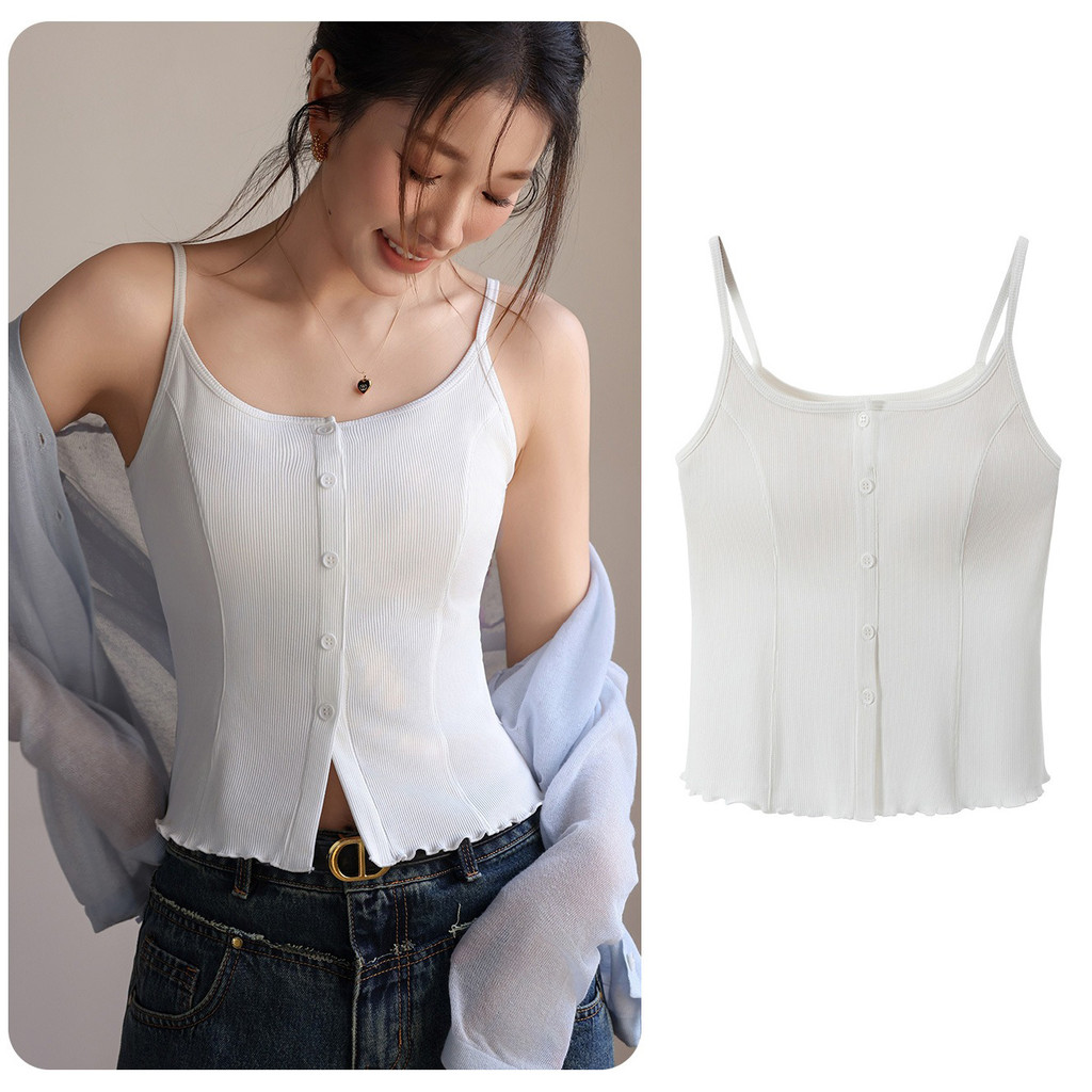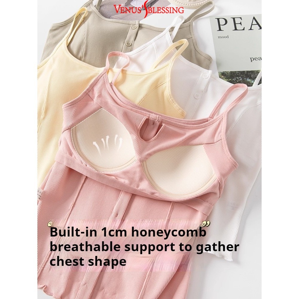 ( Ready Stock ) 2 in 1 เสื้อสายเดี่ยวสาวจั๊มกระชับสัดส่วนผู้หญิง เสื้อกล้ามสายคล้องไหล่บางพร้อมแผ่นรองหน้าอกเสื้อแขนกุดถ้วยในตัว