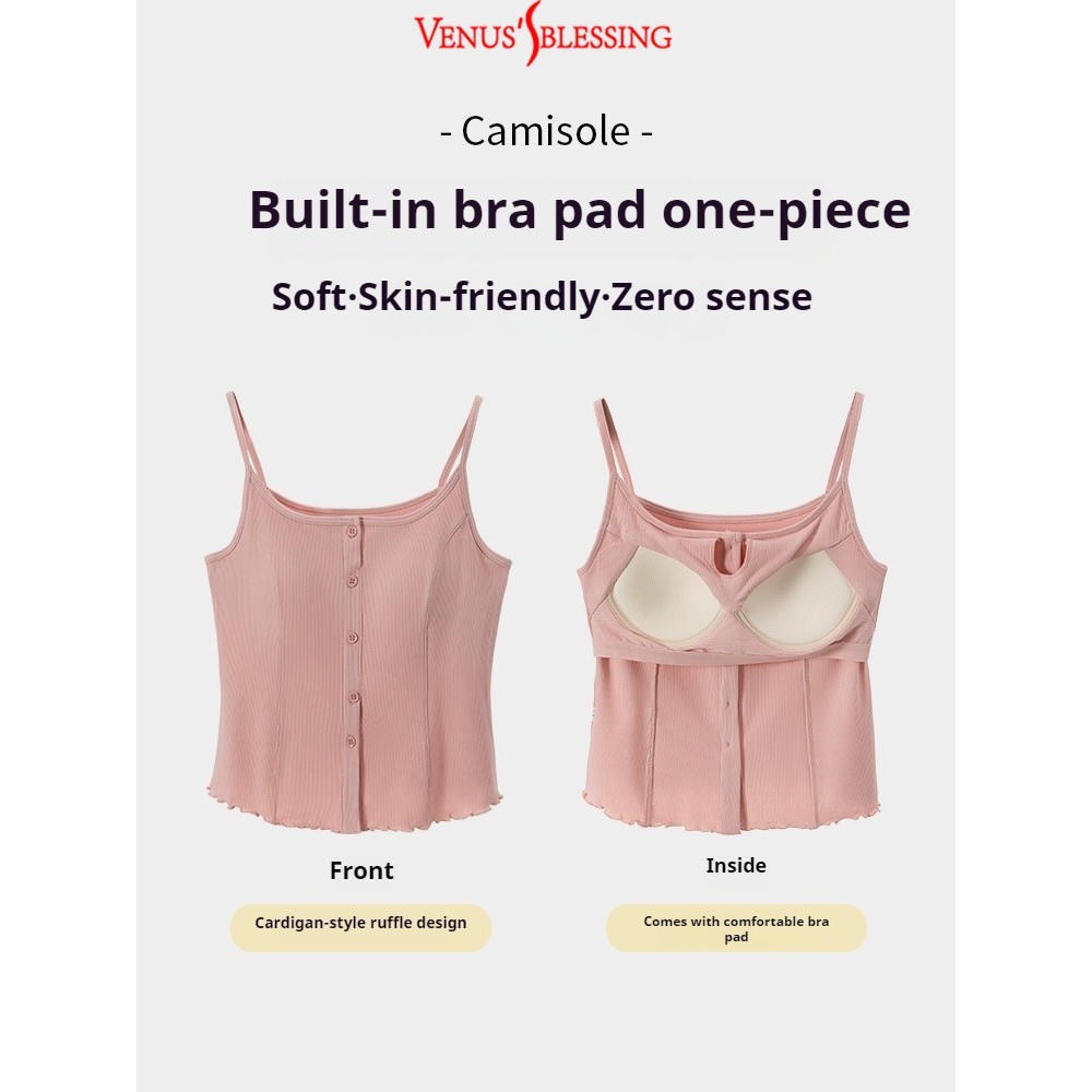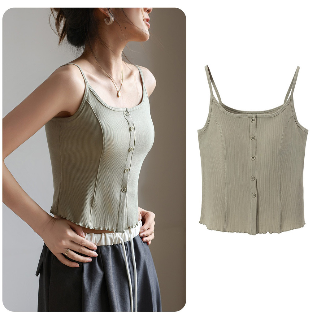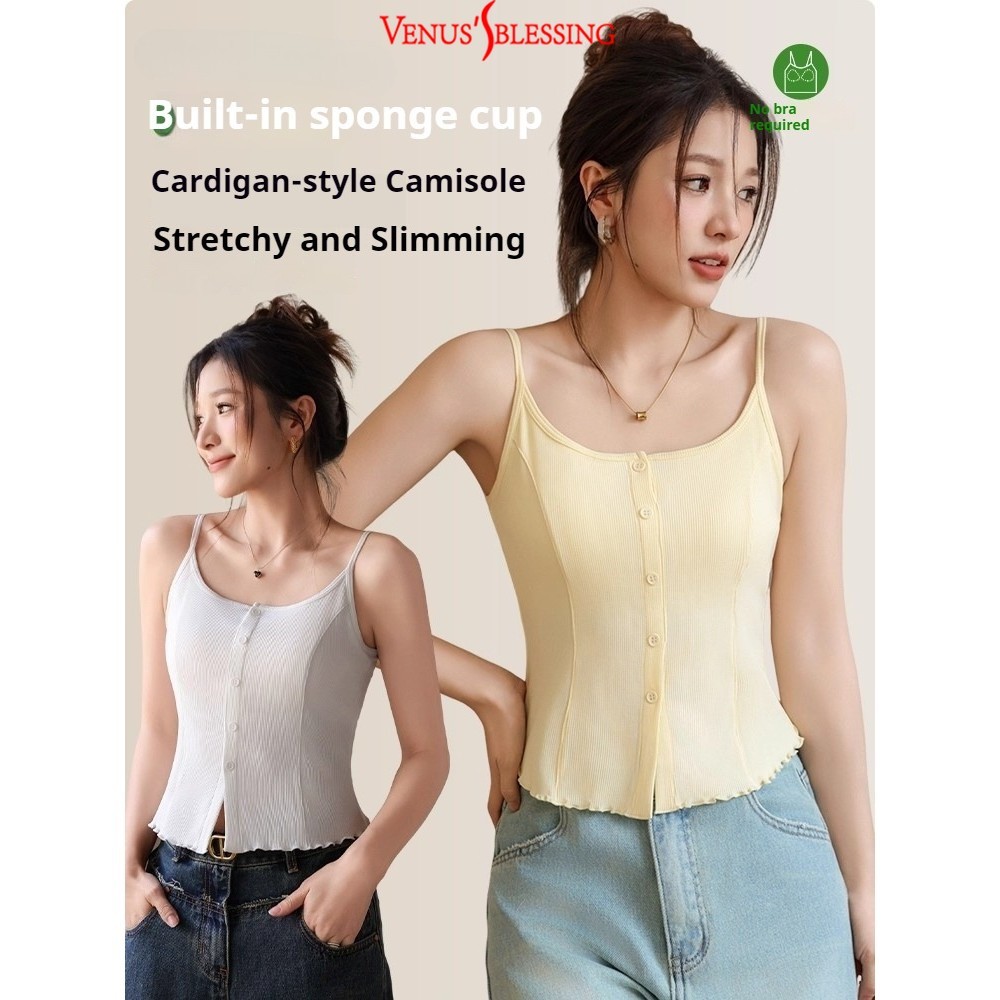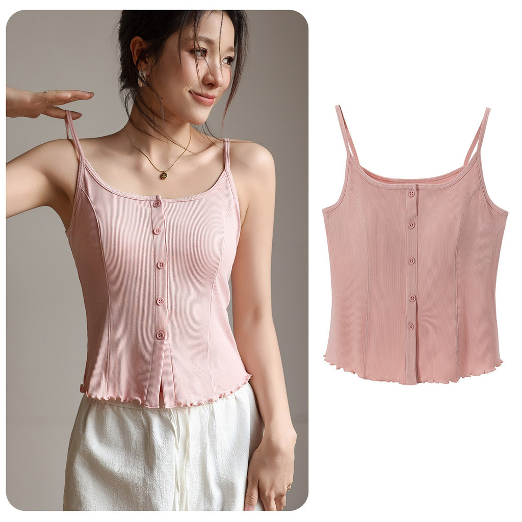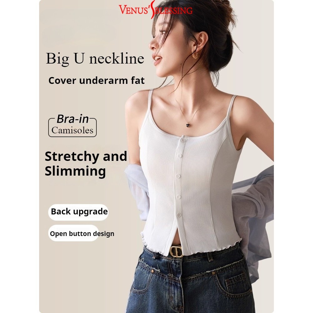 ( Ready Stock ) 2 in 1 เสื้อสายเดี่ยวสาวจั๊มกระชับสัดส่วนผู้หญิง เสื้อกล้ามสายคล้องไหล่บางพร้อมแผ่นรองหน้าอกเสื้อแขนกุดถ้วยในตัว