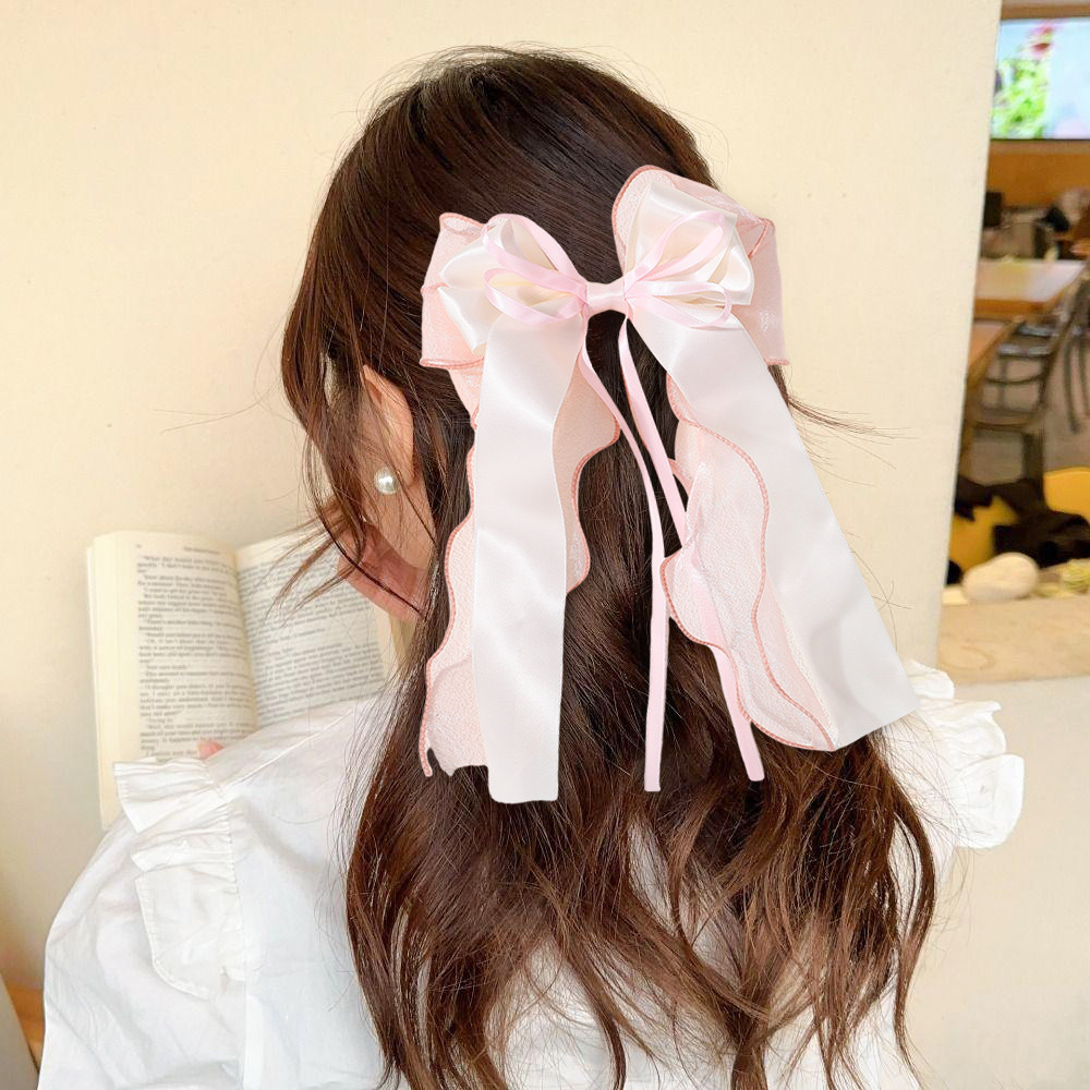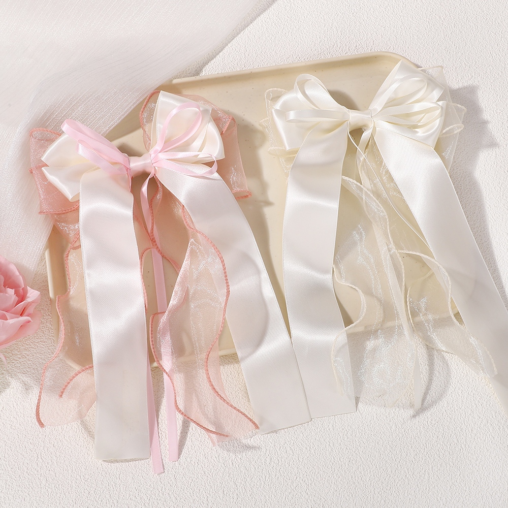 1 ชิ้นลูกไม้ผมโบว์คลิป Coquette Bow Barrettes ยาวหางริบบิ้นสําหรับผู้หญิงคริสต์มาสวาเลนไทน์งานแต่งงานพรหมอุปกรณ์เสริม