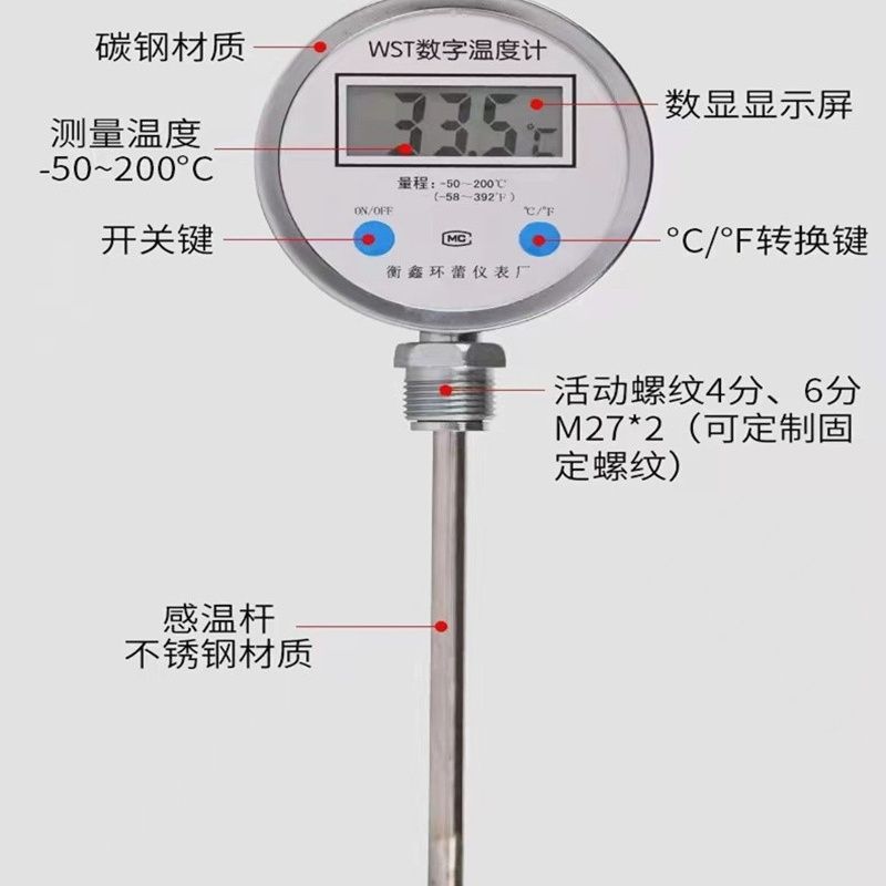 WST411 เทอร์โมมิเตอร์อุตสาหกรรม ไบเมทัลดิจิตอล วัดอุณหภูมิน้ำ/รีแอกเตอร์ โพรบทนทาน