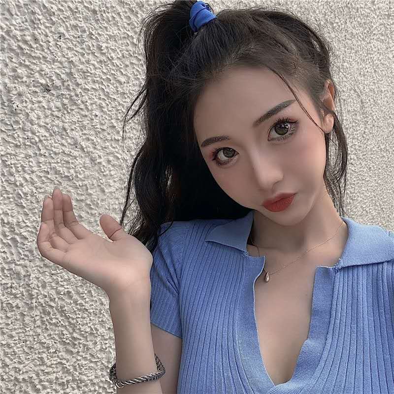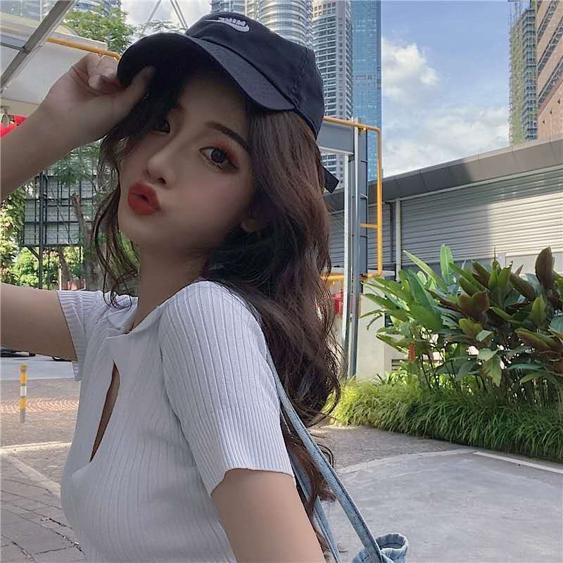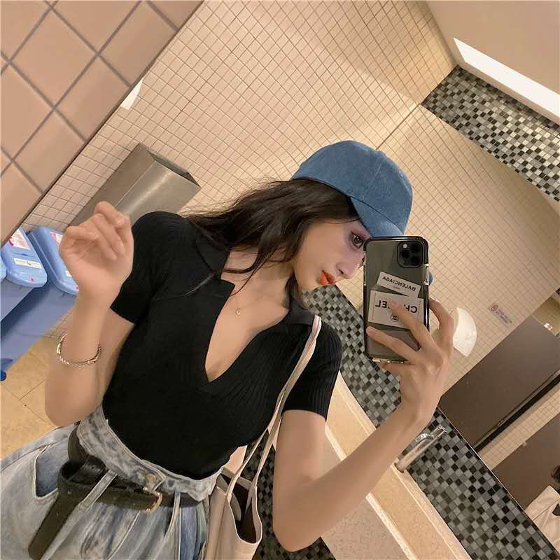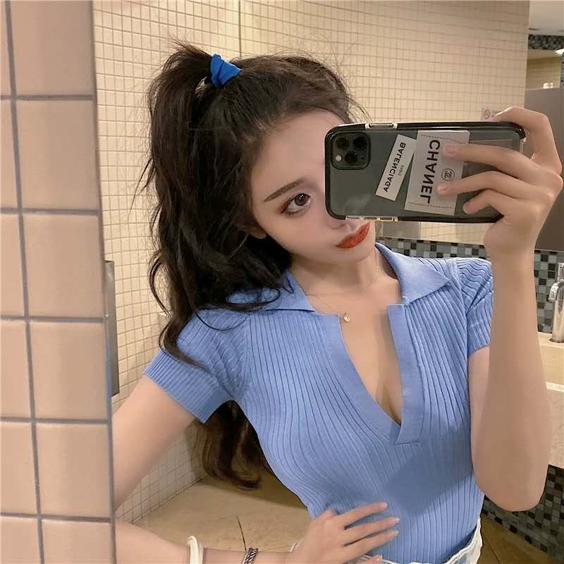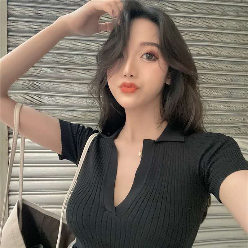 bonnie(พร้อมส่ง/ใหม่ รุ่น#8899)เสื้อไหมพรมแขนสั้นคอปกร่องเล็กสไตล์เกาหลีใส่สบายมาก