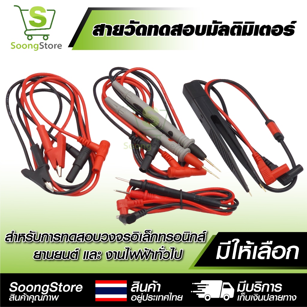 สายวัดทดสอบมัลติมิเตอร์ สายวัดไฟฟ้า (Multimeter Test Leads) ปลายแหลม คลิปปากจระเข้ แบบแหนบ (1ชิ้น)