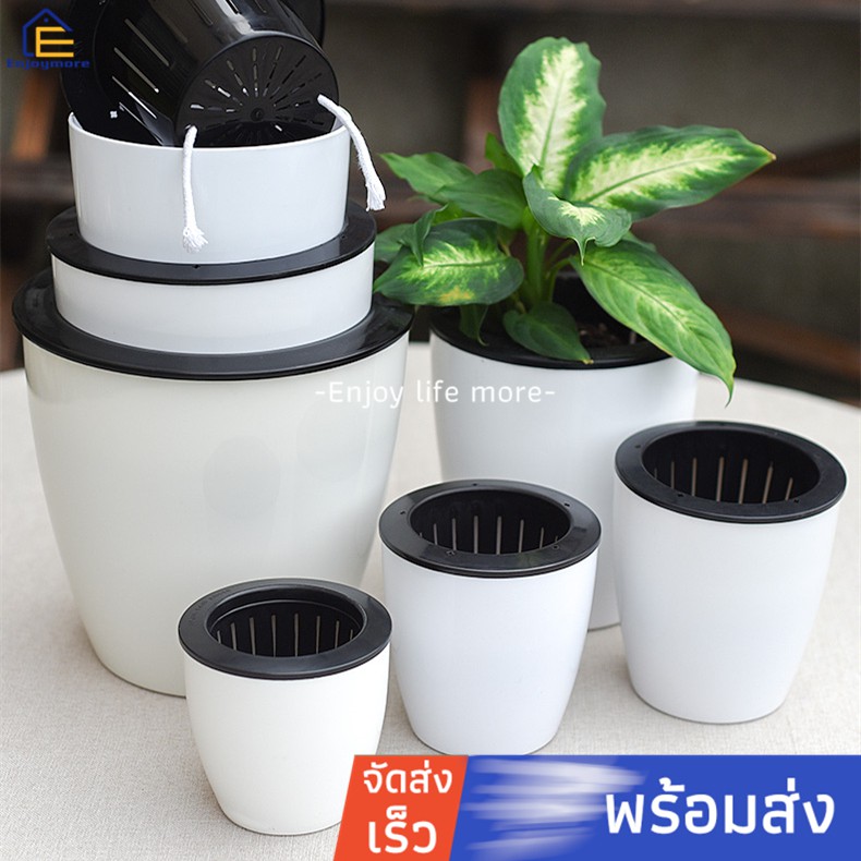 Enjoymore กระถาง กระถางต้นไม้ แบบเก็บน้ำได้ รดน้ำอัตโนมัติ