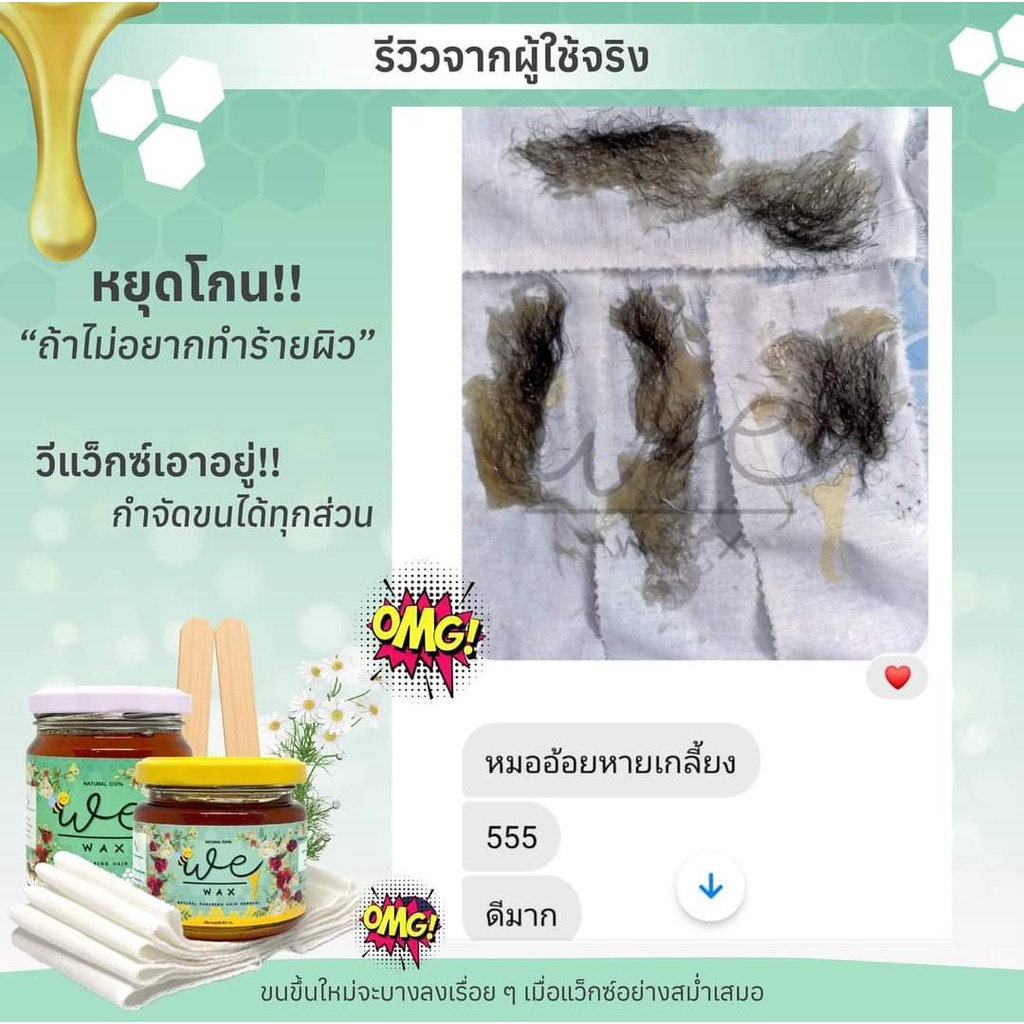 แว็กซ์น้ำผึ้ง สูตรสำหรับขนหนา แ ว็กกำจัดขน แว็กขนขา ขนแขน ขนหมออ้อย ขนรักแร้ พร้อมอุปกรณ์ WeWax
