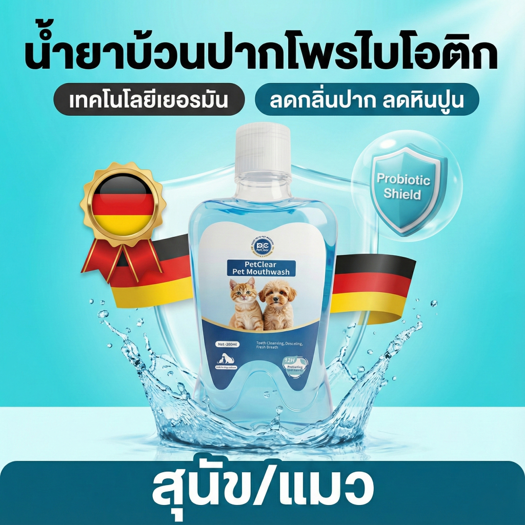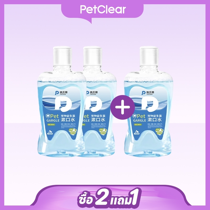 【ซื้อ 2 แถม 1】น้ำยาบ้วนปาก PETCLEAR สำหรับสุนัขและแมว 380 มล. ทำความสะอาดฟันและขจัดกลิ่นปาก กลิ่นหอมยาวนาน