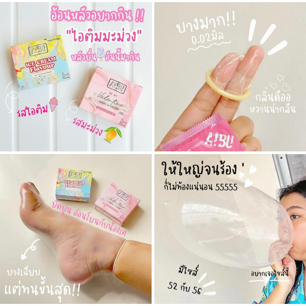 AIBU ถุงยางอนามัย อิบุ กลิ่นหอม 4 รส (กล่อง 3 ชิ้น) ของแท้จากโรงงาน