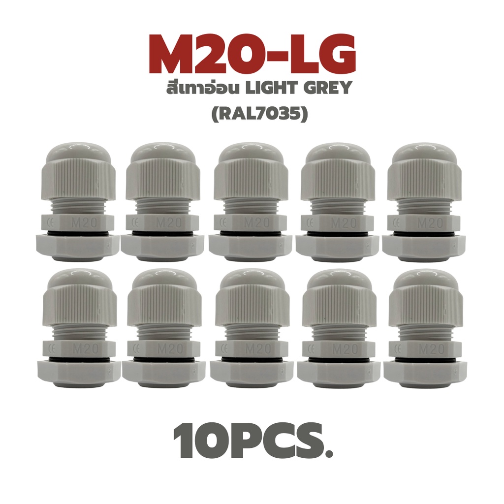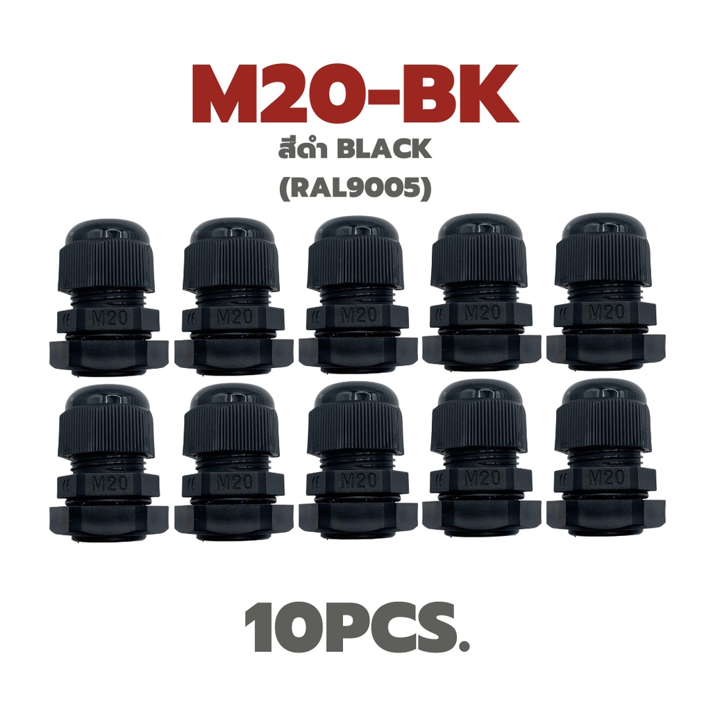 M20 พลาสติกเคเบิ้ลแกลนด์กันน้ำ IP68 ไนล่อน พีเอ6 (Nylon/PA6/Plastic Cable Gland) แพ็ค 5 ชิ้น / แพ็ค 10 ชิ้น
