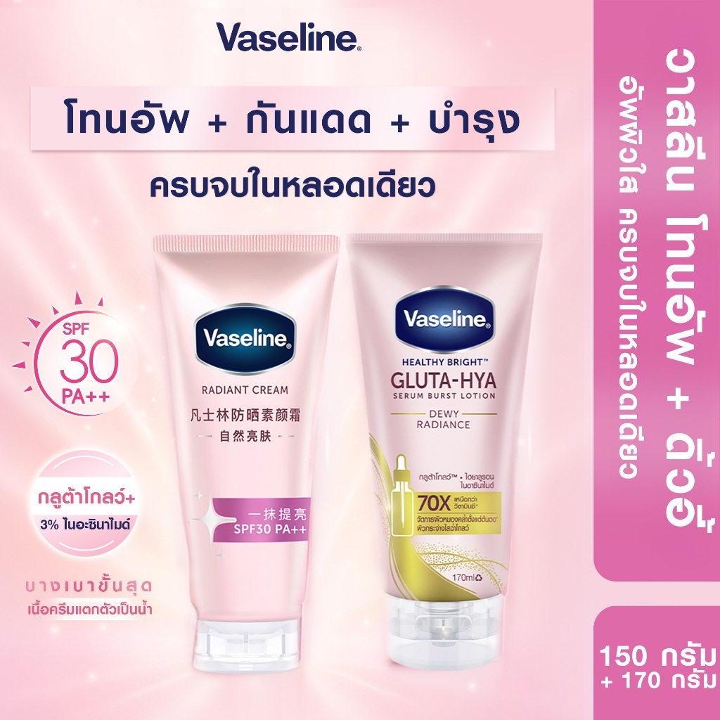 [ใหม่] โทนอัพพสจีน วาสลีนเรเดียนซ์ ซัน โทนอัพ 150ก Vaseline Radiant Sun Tone Up 150G