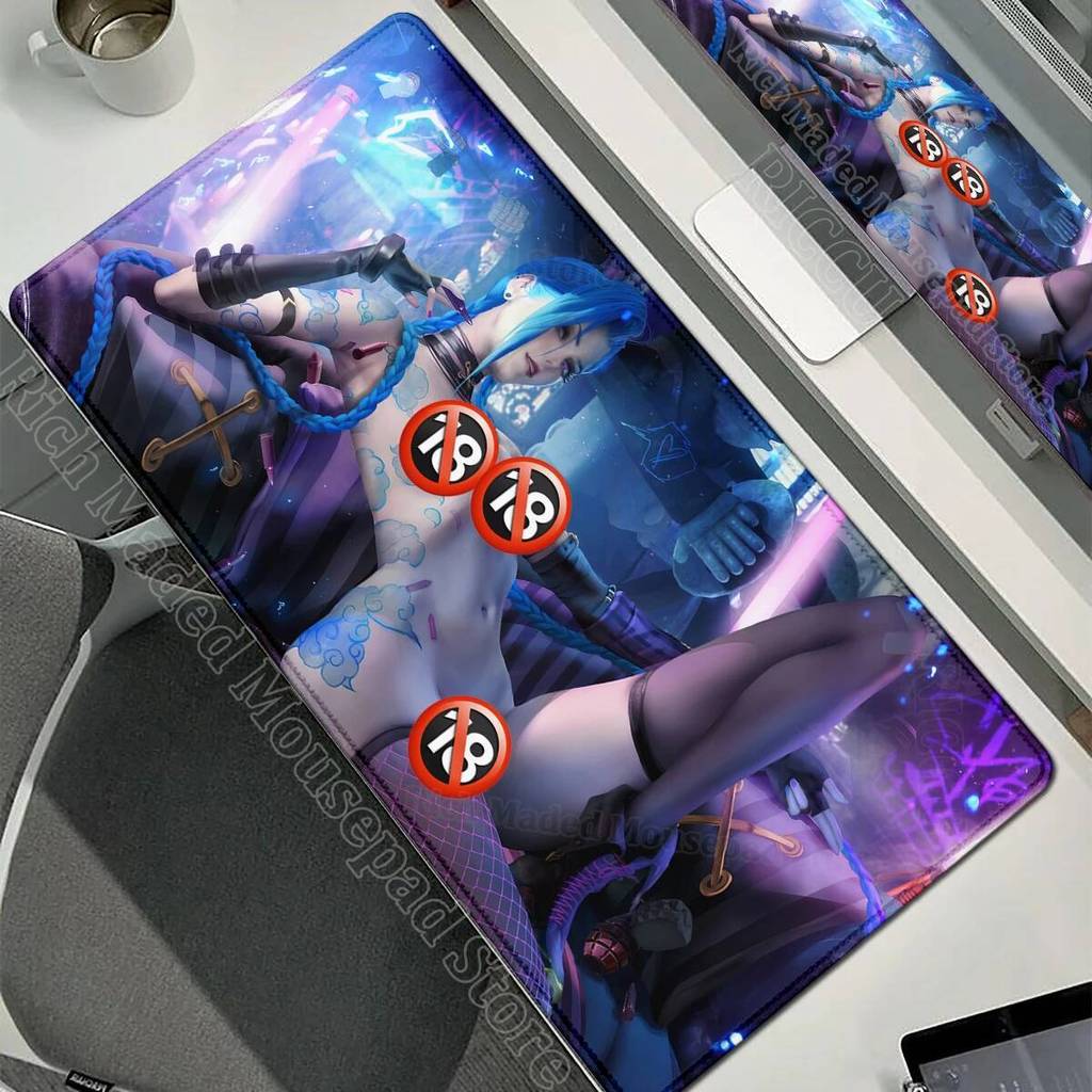 สาวแผ่นรองเมาส์ขนาดใหญ่ XXL E-Sports PC คีย์บอร์ด Mousepad Gamer LOL Jinx Arcane Ahri แผ่นรองเม้าส์ Gamer อุปกรณ์โต๊ะ