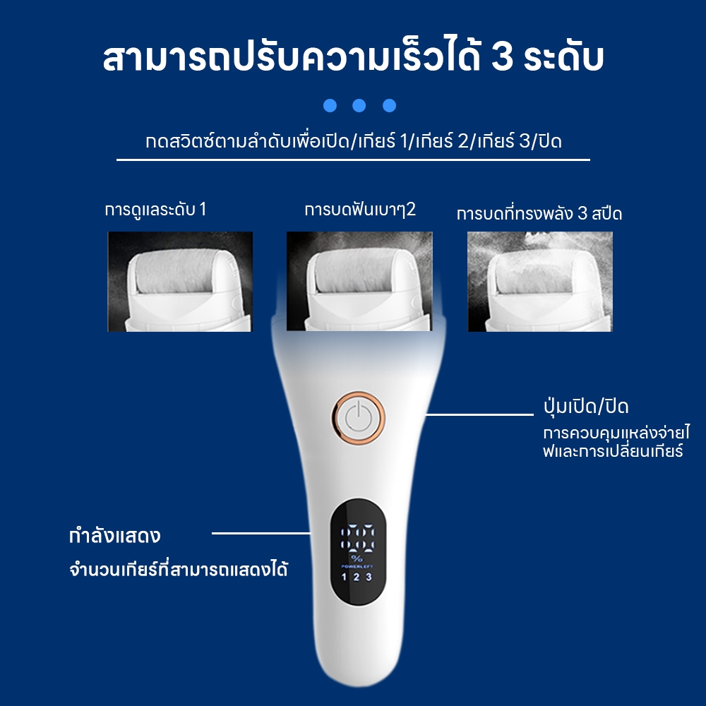INSMART 3 ระดับความเร็ว เครื่องขัดเท้าไฟฟ้า เครื่องสครับเท้า บดผิวเบาๆ & ทรงพลัง พร้อมแสดงเกียร์อ