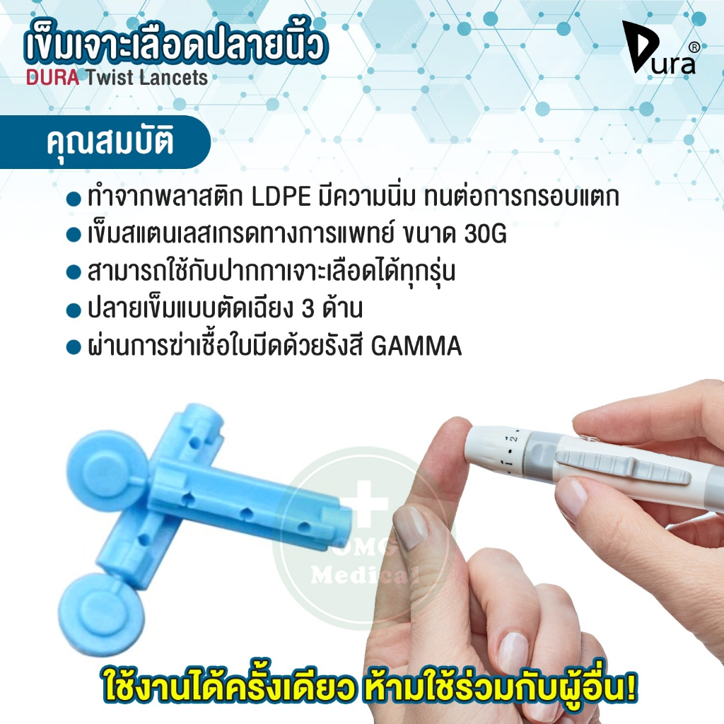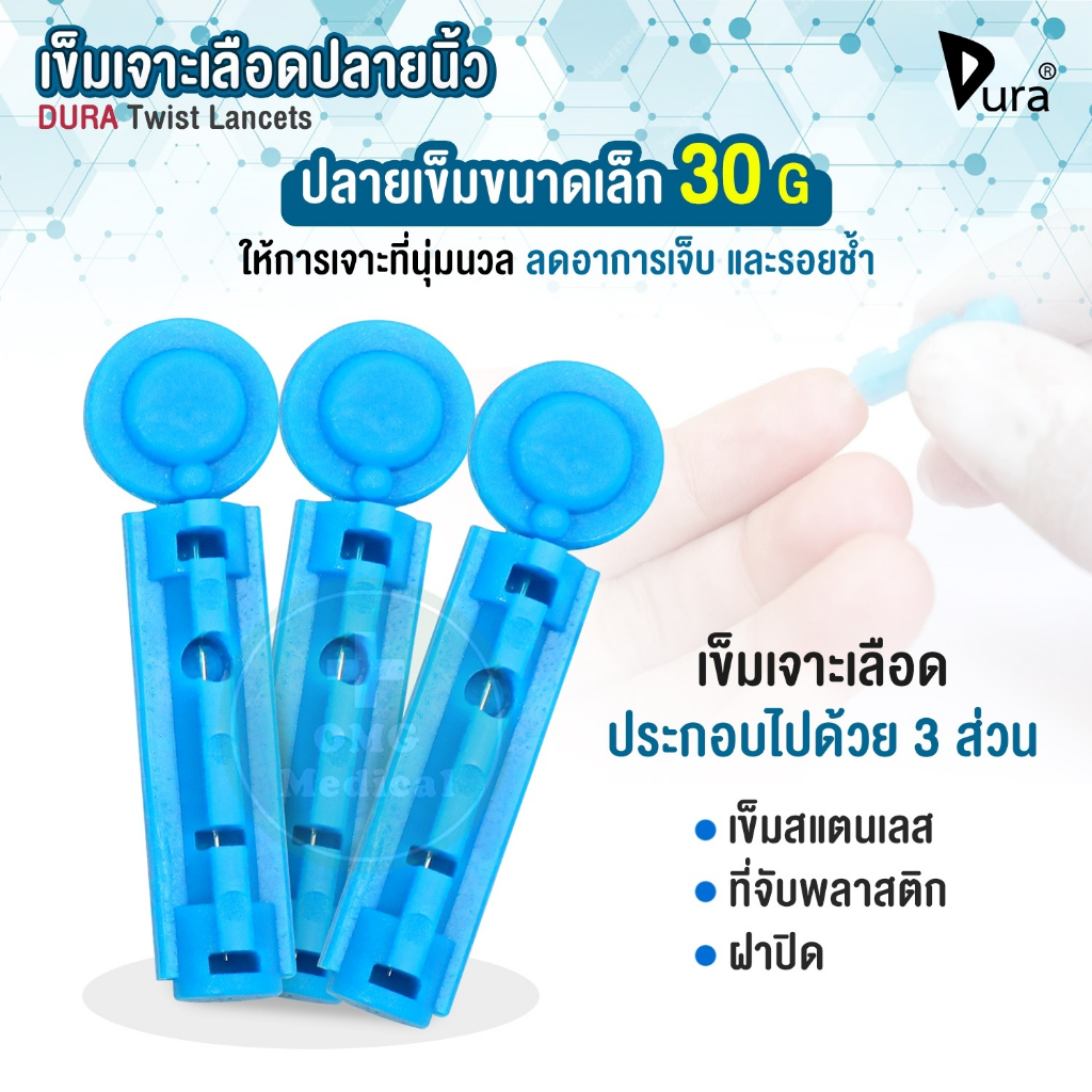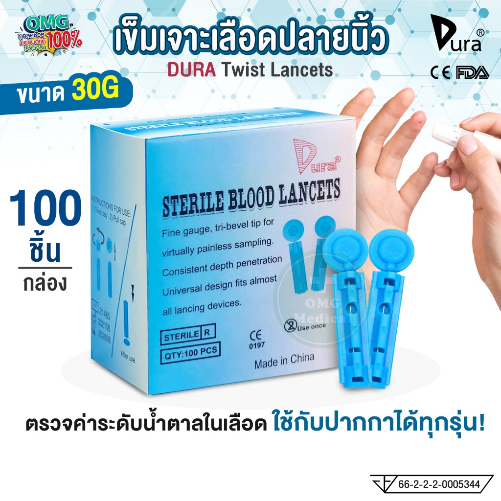 เข็มเจาะเลือด 30G Dura Twist Lancets เข็มเจาะเลือดปลายนิ้ว เข็มเจาะเลือดเบาหวาน ใช้ได้กับปากกาทุกรุ่น (100ชิ้น)