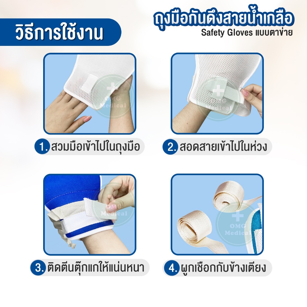 (ขายส่ง) ถุงมือกันดึงสายน้ำเกลือ Safety gloves ถุงมือผู้ป่วยติดเตียง กันบาดเจ็บ ICU ดึงสาย นอนดิ้น แบบตาข่าย 1 ข้าง