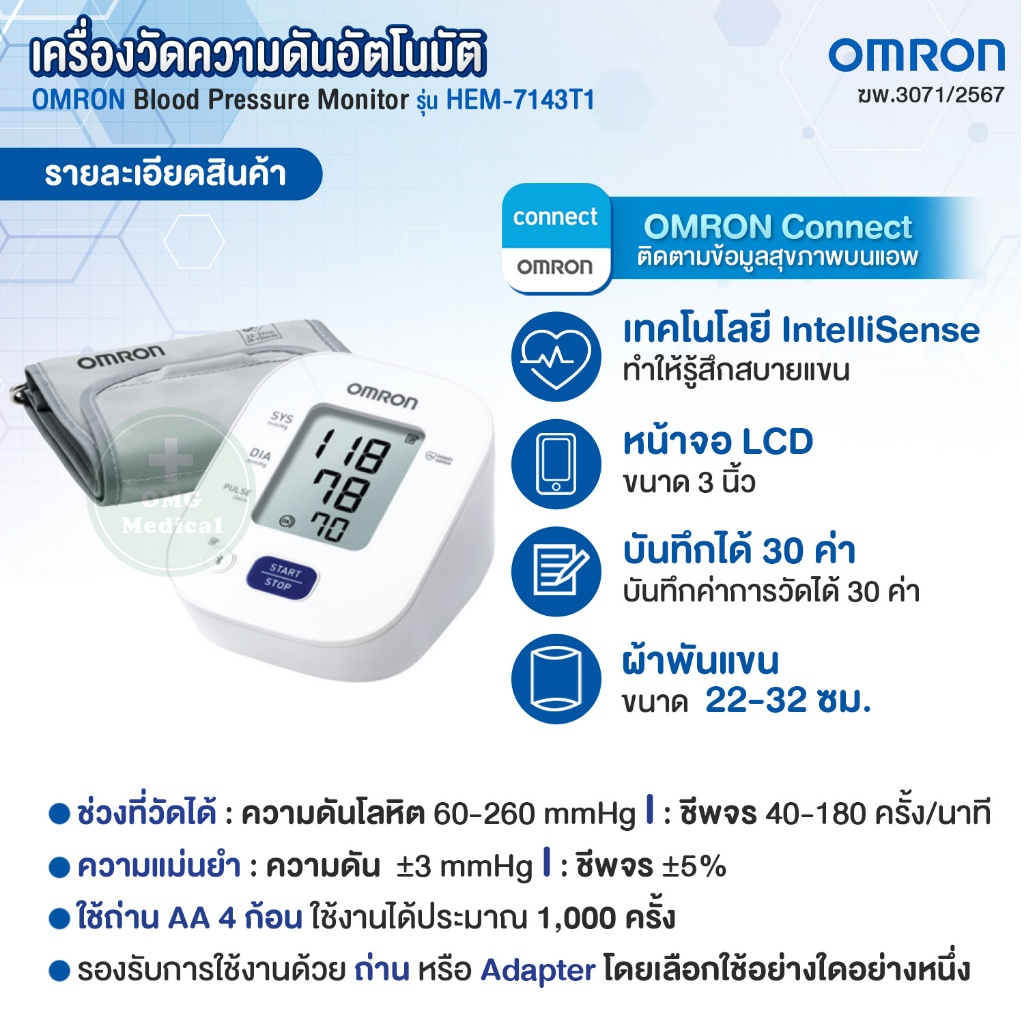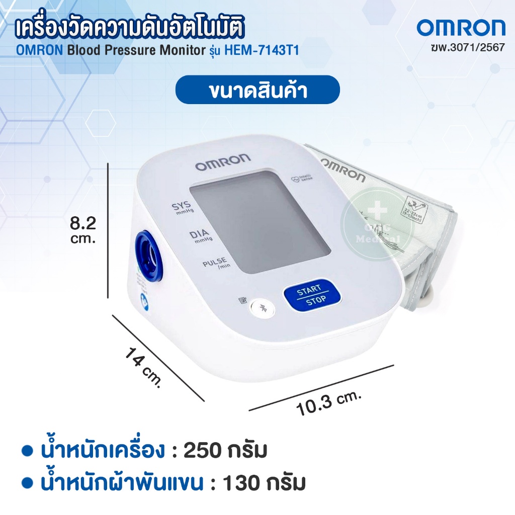 OMRON เครื่องวัดความดันอัตโนมัติ รุ่น HEM-7143T1 (รับประกัน 6 ปี) Blood Pressure Monitor [แถมฟรี! Adapter+กระเป๋าผ้า]
