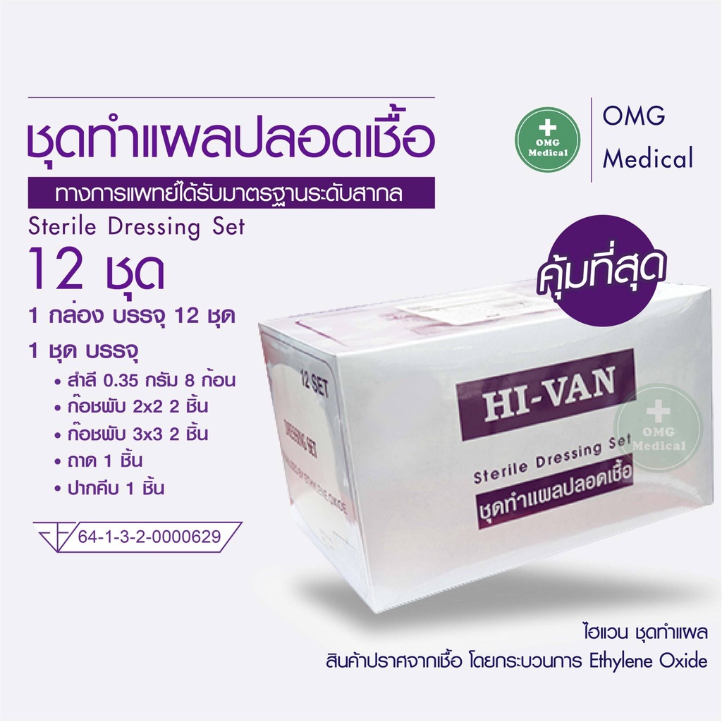 ชุดทำแผลสเตอร์ไรด์ Hi-Van Sterile Dressing Set (12ชุด/1กล่อง) ทำแผลปลอดเชื้อ อุปกรณ์ทำแผลปลอดเชื้อ