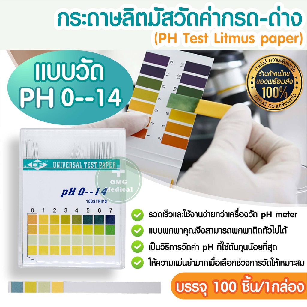 [ร้านคนไทย ส่งทุกวัน] กระดาษลิตมัส วัดค่ากรด-ด่าง PH Test Litmus Paper จำน 100 Strips 0-14 PH 4 Color (แบบวัดค่าเฉลี่ย)