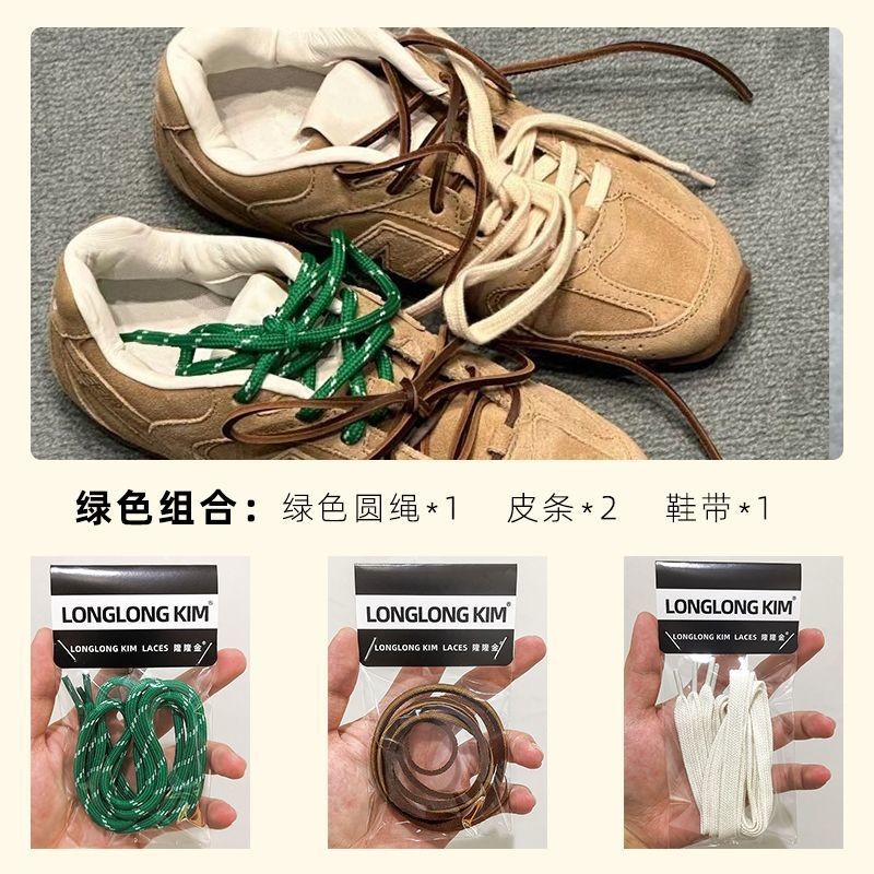 [คลังสินค้าพร้อม] Lung Jin เหมาะสําหรับ nb Co-Branded miu Shoelace สีเขียว diy Retro รองเท้าเทรนนิ่งเยอรมันรองเท้าผ้าใบสี-Blocking Double Shoelace YnO0E8TlgV0915