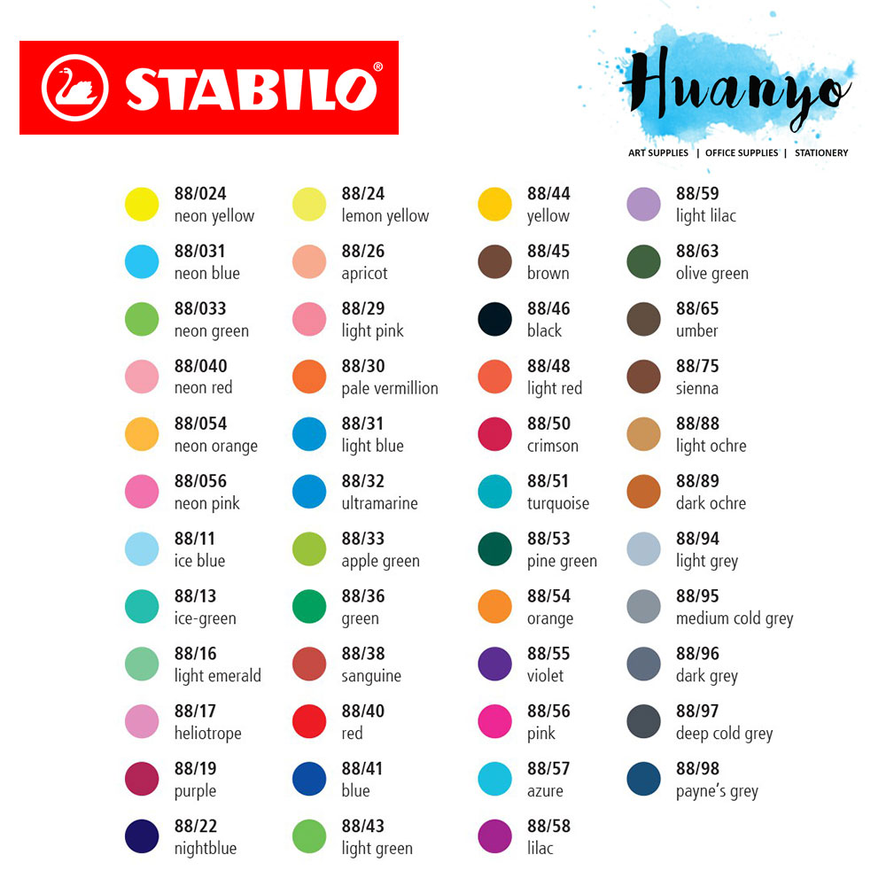 Stabilo Point 88 Colour Fineliner Marker Pen 0.4 mm Needle Tip (20 สี, ต่อชิ้น)