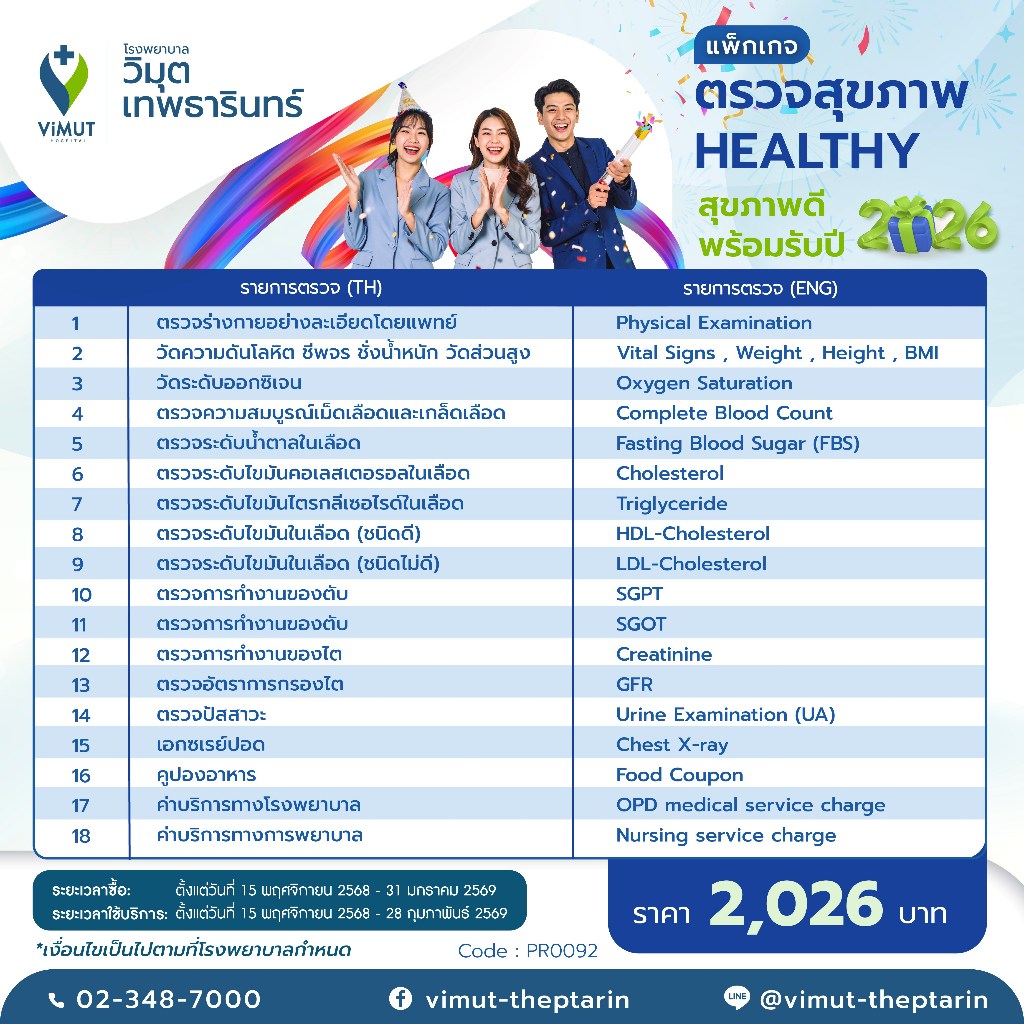 โปรแกรมตรวจสุขภาพ Healthy สุขภาพดีต้อนรับปีใหม่ ราคา 2026บาท