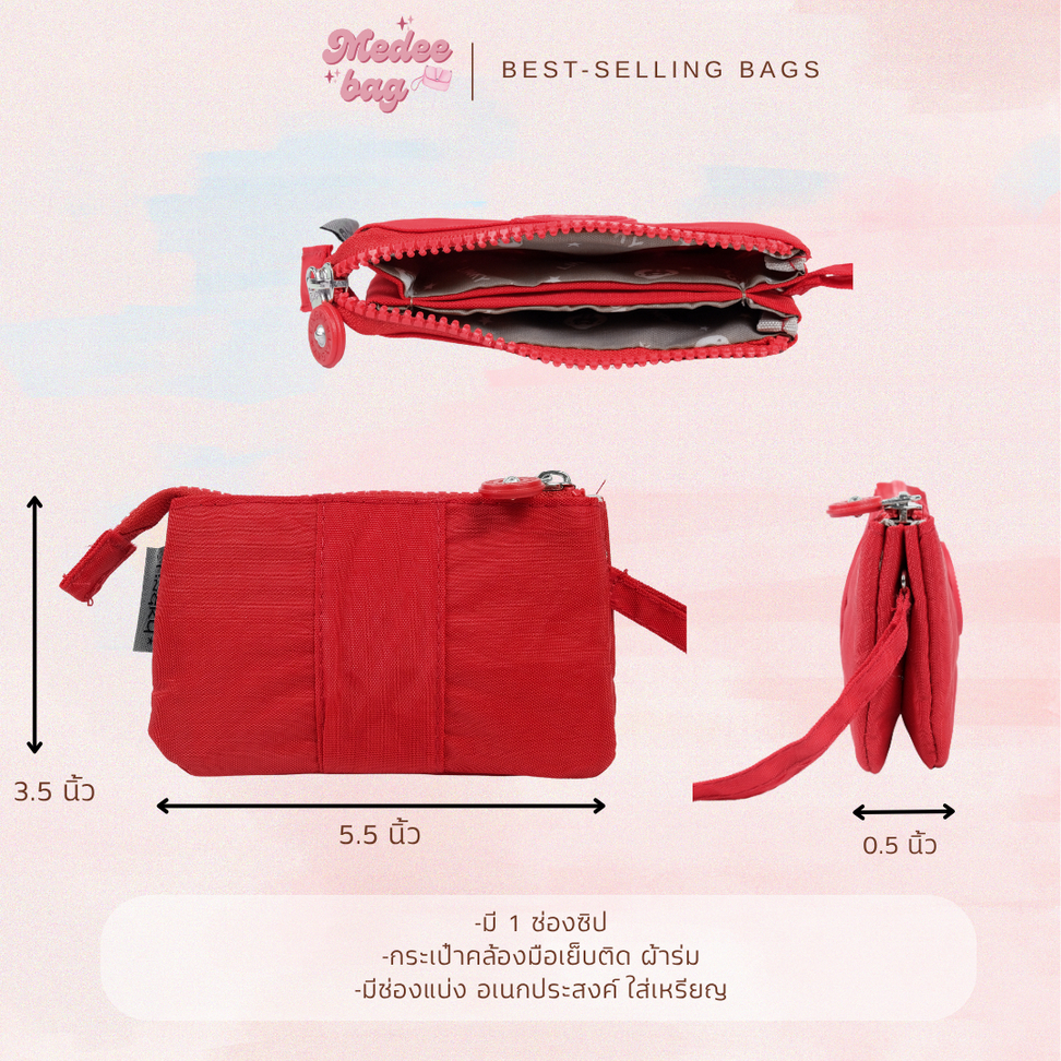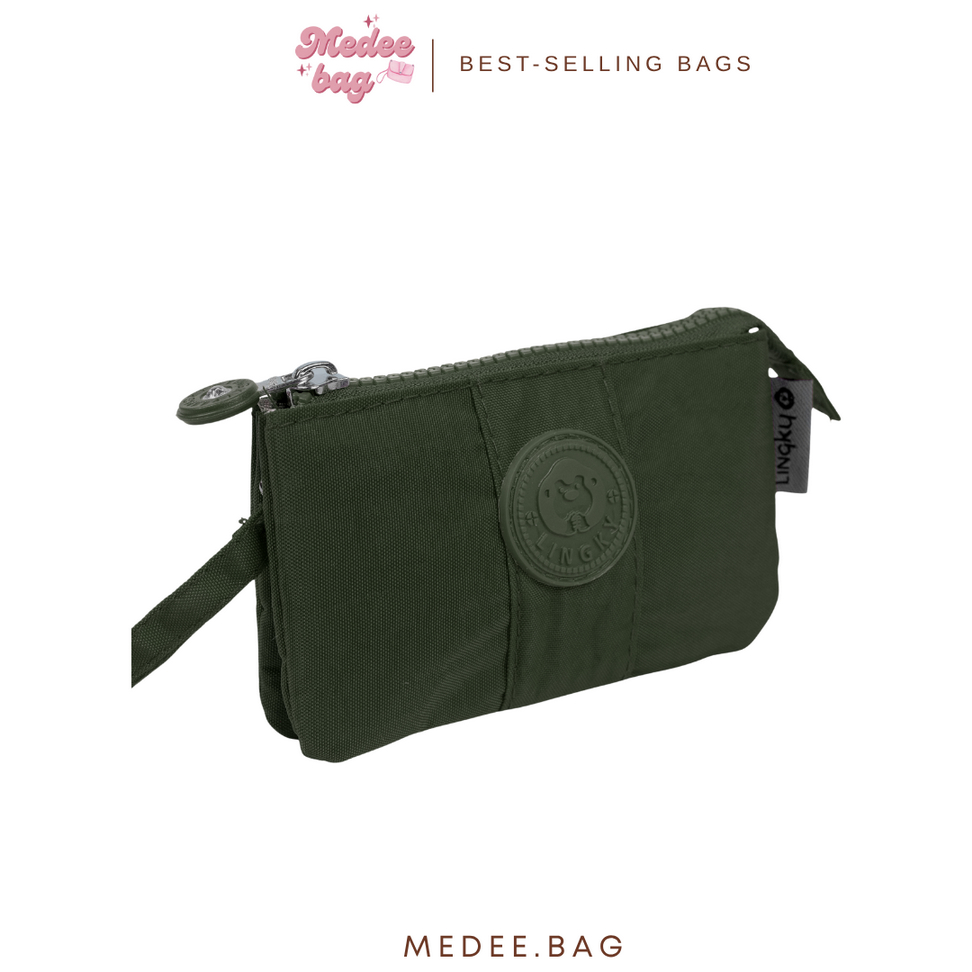 Lingky กระเป๋าคล้องมือสายเย็บตัด ผ้าร่ม ขนาด 5.5 นิ้ว 1 ช่องซิปหลัก ภายในแบ่ง 3 ช่อง | รุ่น LK2021