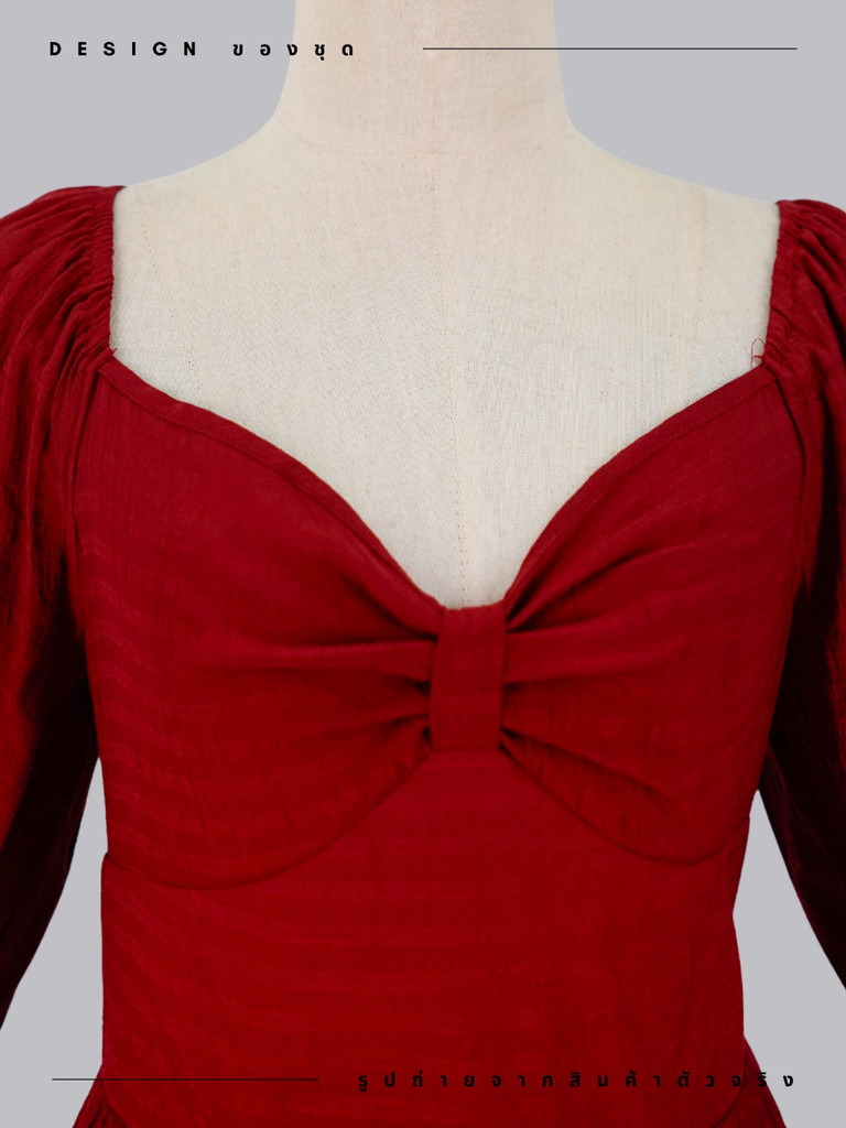 ชุดเดรสยาวสีแดงเพลิง เดรสออกงานผู้หญิง สไตล์เซ็กซี่มีระดับ