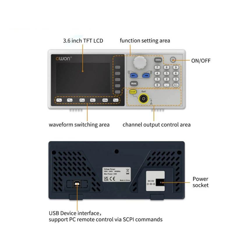 OWON DGE1030 Arbitrary Waveform Generator Single Channel 30MHz 1CH 3.6inch Benchtop 14bits Wavefor