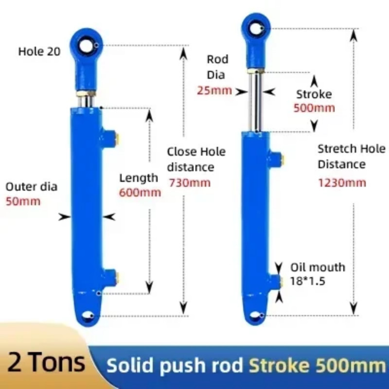 2 Ton Hydraulic Cylinder 100-1000 Mm Stroke Heavy Duty Hydraulic Oil Cylinder Two-way Lifting Small