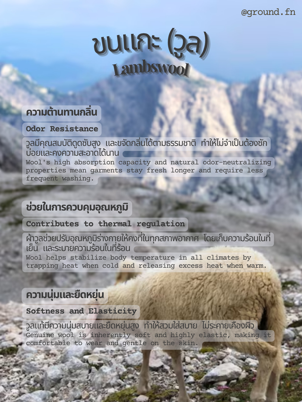 กราวด์ ผ้าพันคอวูลพรีเมียม สีเทาอ่อน / ground premium wool scarf - Light Grey