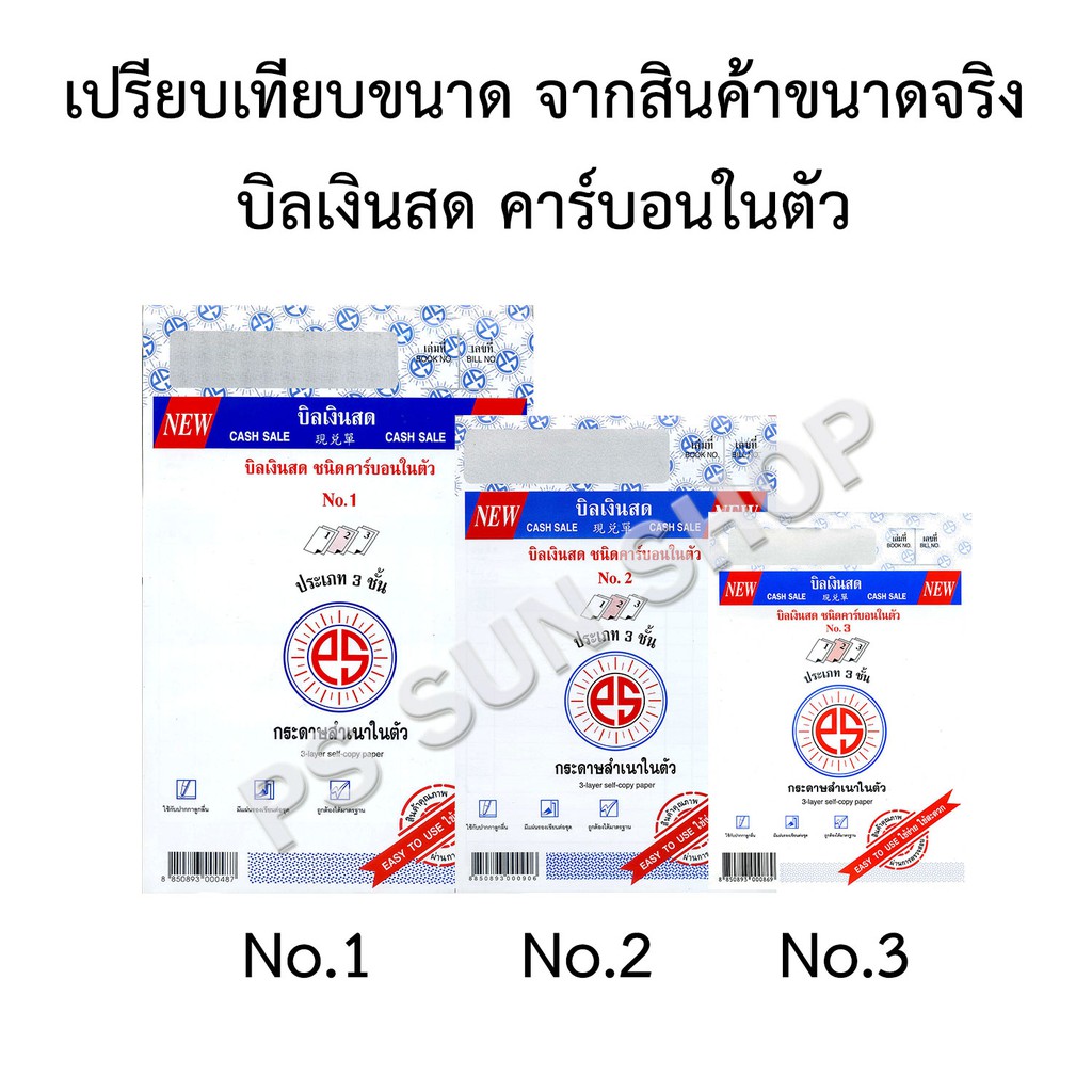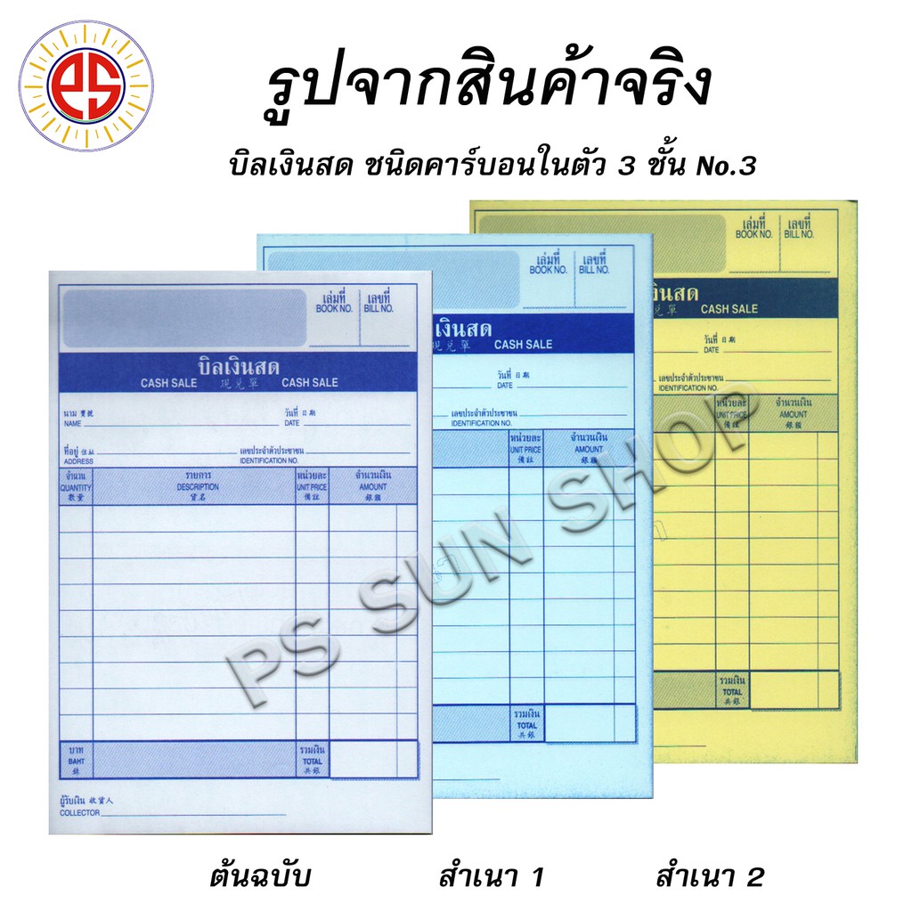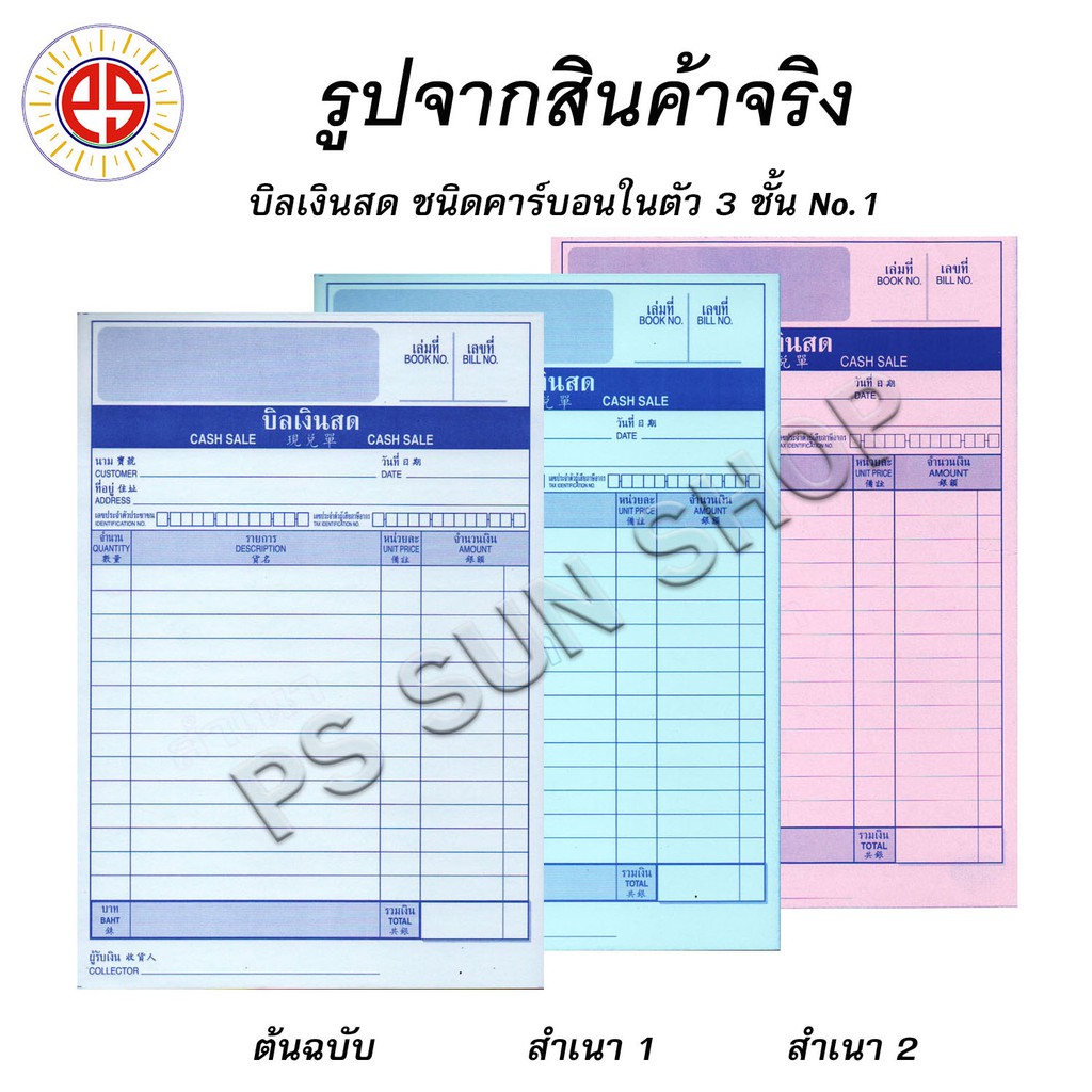 บิลเงินสด คาร์บอนในตัว 3 ชั้น No.1,2,3 PS SUN (1 เล่ม)