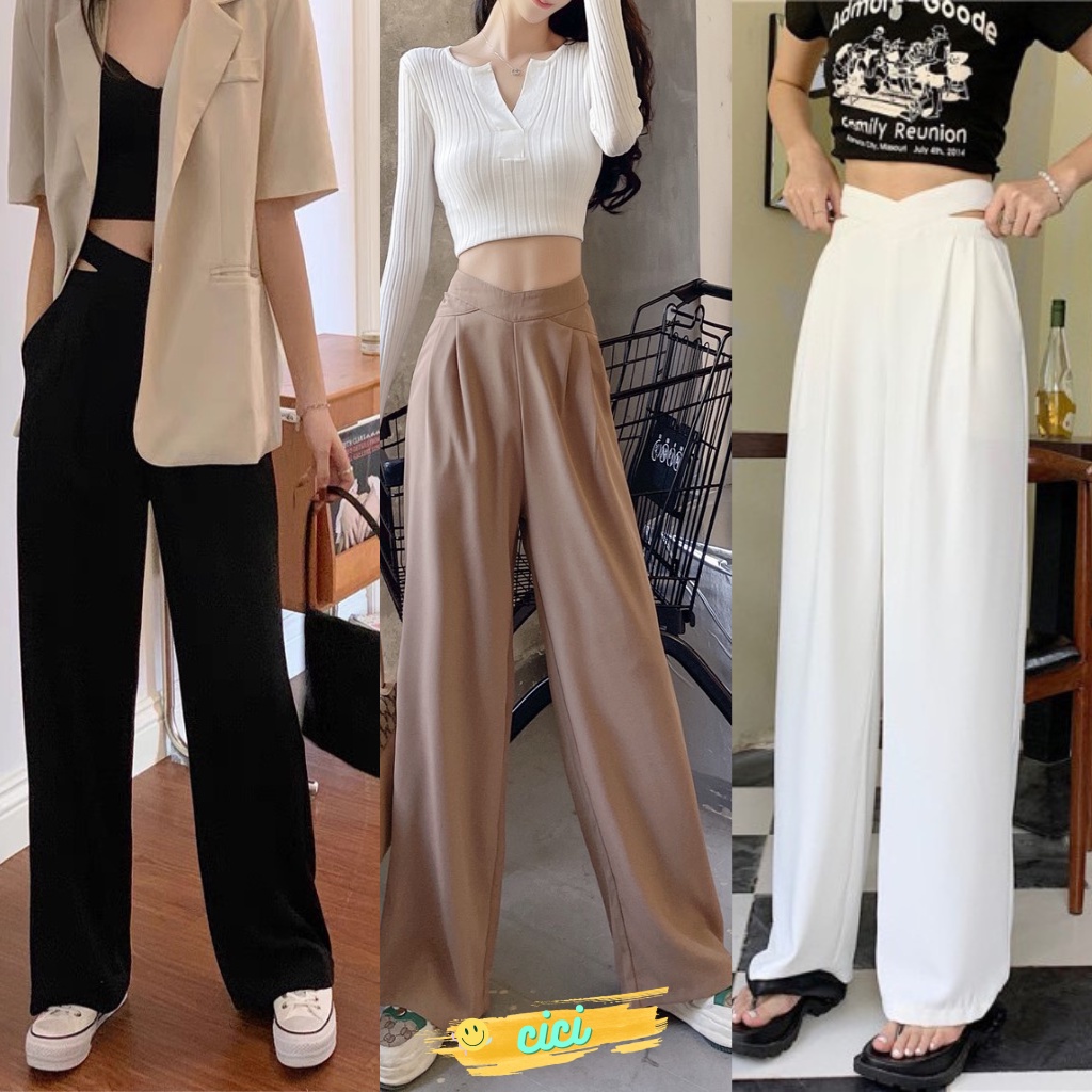 ส่งทันที Cici(NO. 237)กางเกงขายางกระบอกเอวเว้า ทรงสวยเนื้อผ้าดีไม่ยับ ใส่แมทช์ครอปปังมาก