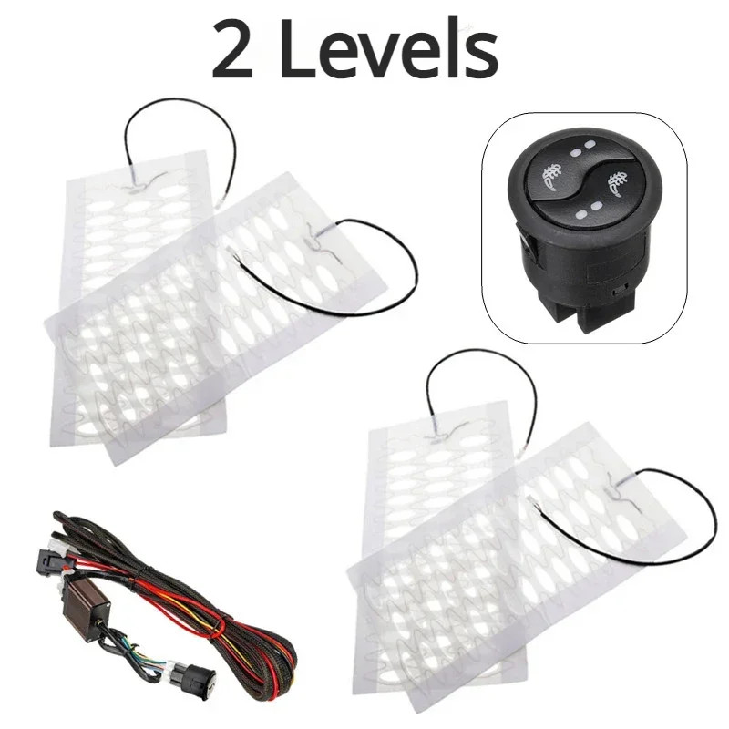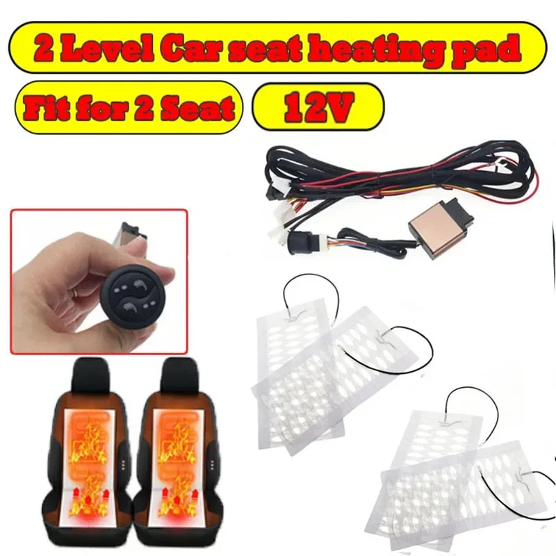 12V Carbon Fiber/ Alloy Car Heated Seat Cover Cushion Pad Kit 2 Level High/Low Temp Switch Universa