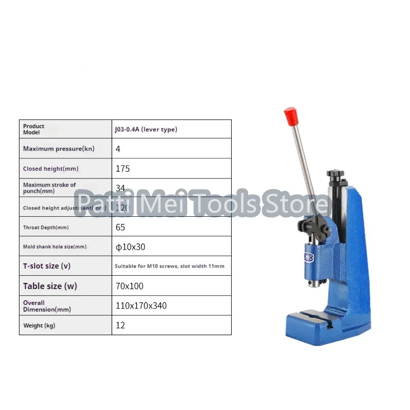 4KN Small Desktop Precision Manual Press J03-0.4A Manual Punching Machine Press Finale Machine Manu