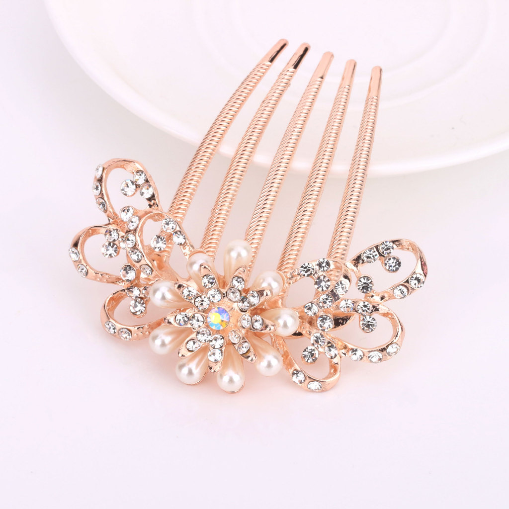 High-End Five-ฟันRhinestoneใส่หวีโบว์กิ๊บ