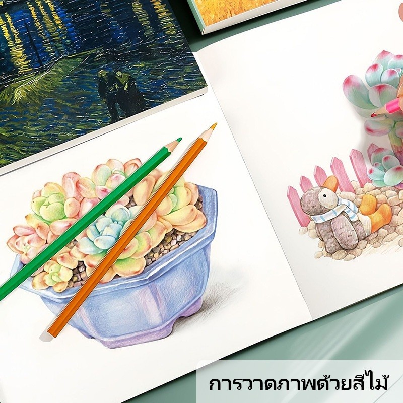 สมุดสเก็ตช์ ปกภาพสีน้ํามันแวนโก๊ะ 80 แผ่น 160 หน้าเปล่า ท้องฟ้า ดาว ดอกทานตะวัน ทุ่งข้าวสาลี ดวงจันทร์