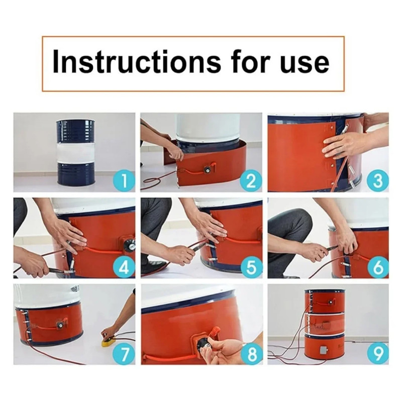 Knob Metal Drum Pail Heater 2000W 1740x125mm Electric Silicone Oil Drum Heater Belt Band Warmer