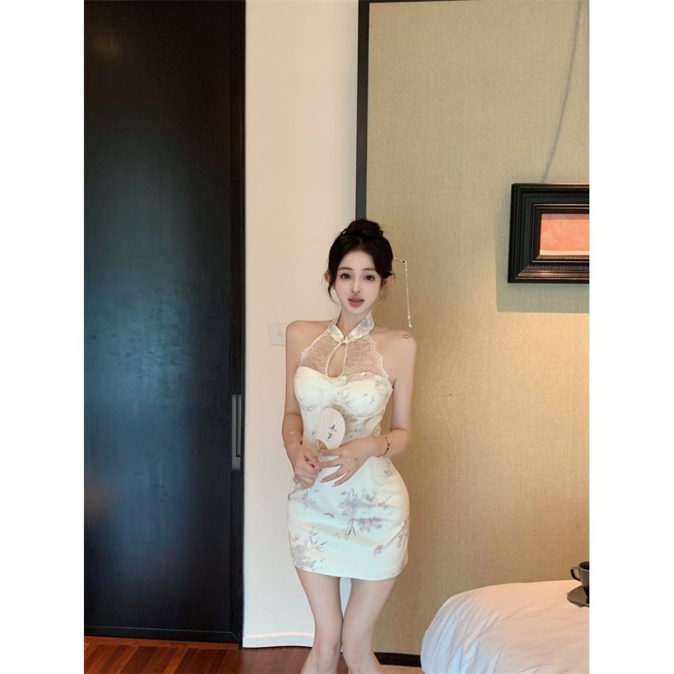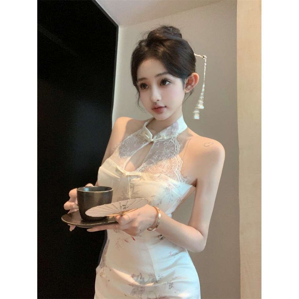 ใหม่สไตล์จีนแห่งชาติ กี่เพ้า สลิงชุดหญิงก้นที่สวยงามเล็กๆน้อยๆแม่กระโปรงลูกไม้ ชม. เปลี่ยนแปลง หลอดด้านบนกระโปรง