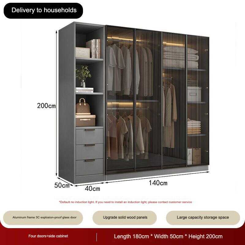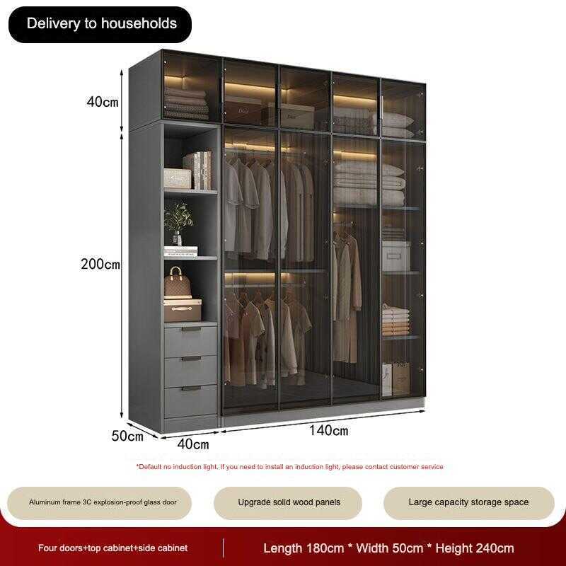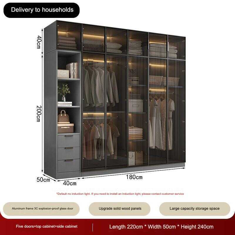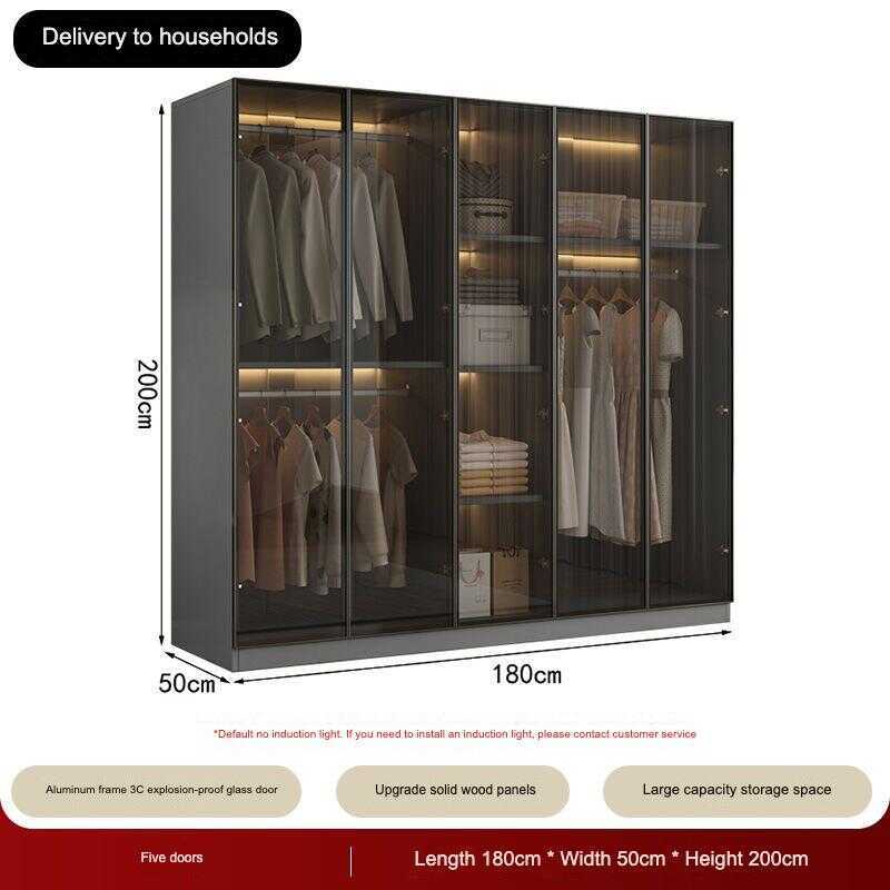 Custom Closet Glass Door Wardrobe Solid Wood Bedroom Storage Cabinet Modern Minimalist Furniture